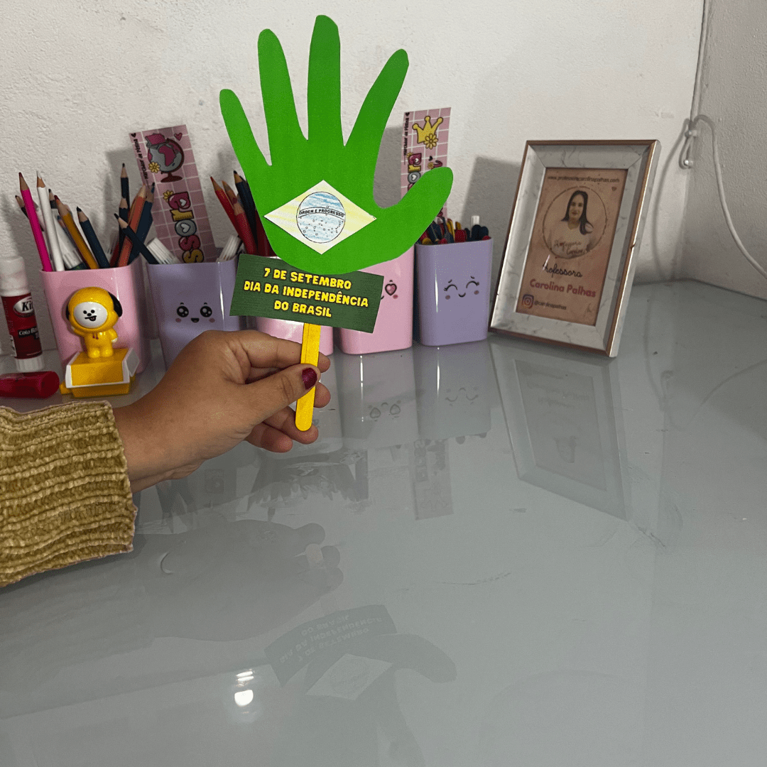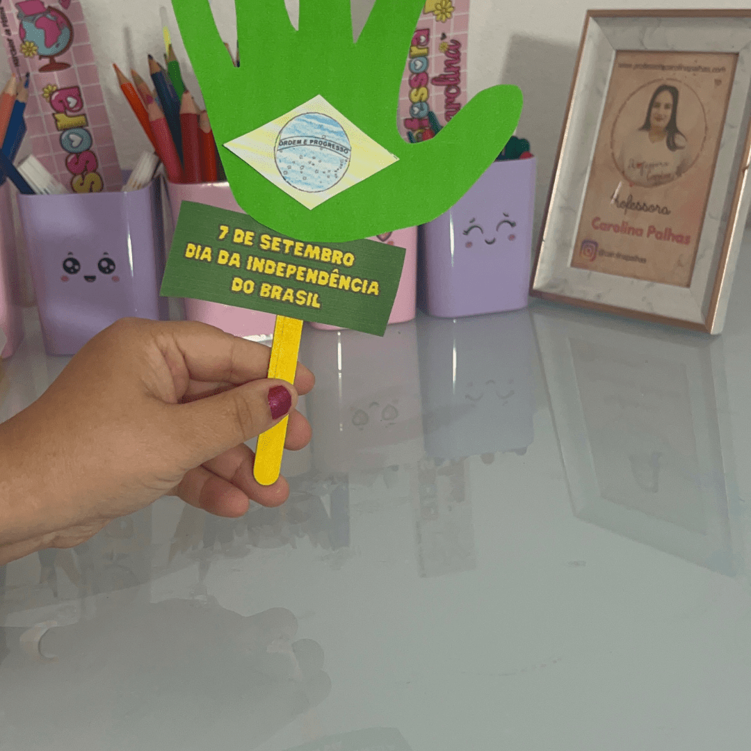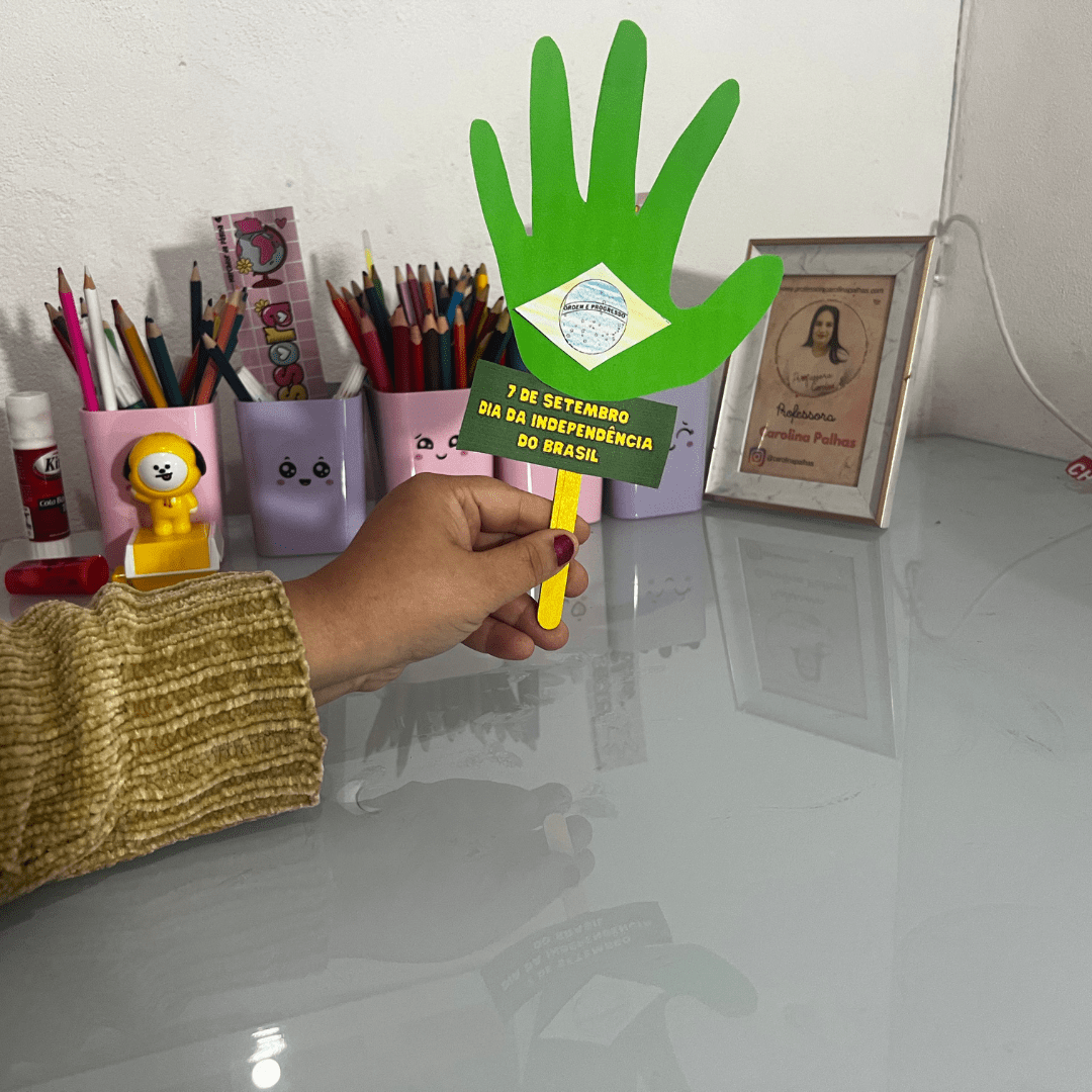 Que tal celebrar a Independência do Brasil com uma atividade criativa e lúdica para as crianças? Esta atividade propõe a criação de uma bandeira de mão temática, como a da imagem em anexo, que é uma excelente maneira de ensinar sobre os símbolos nacionais e o significado do 7 de setembro de forma divertida e interativa.