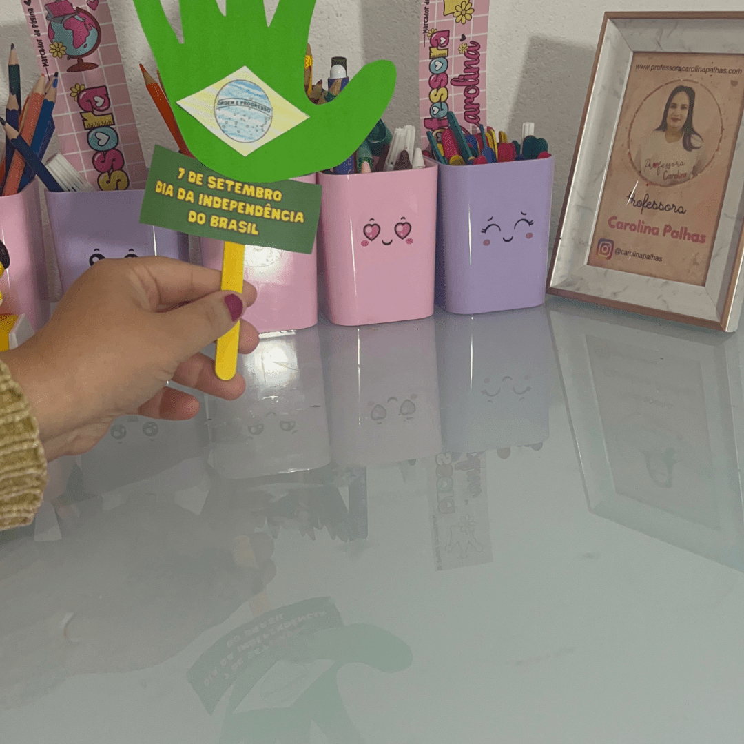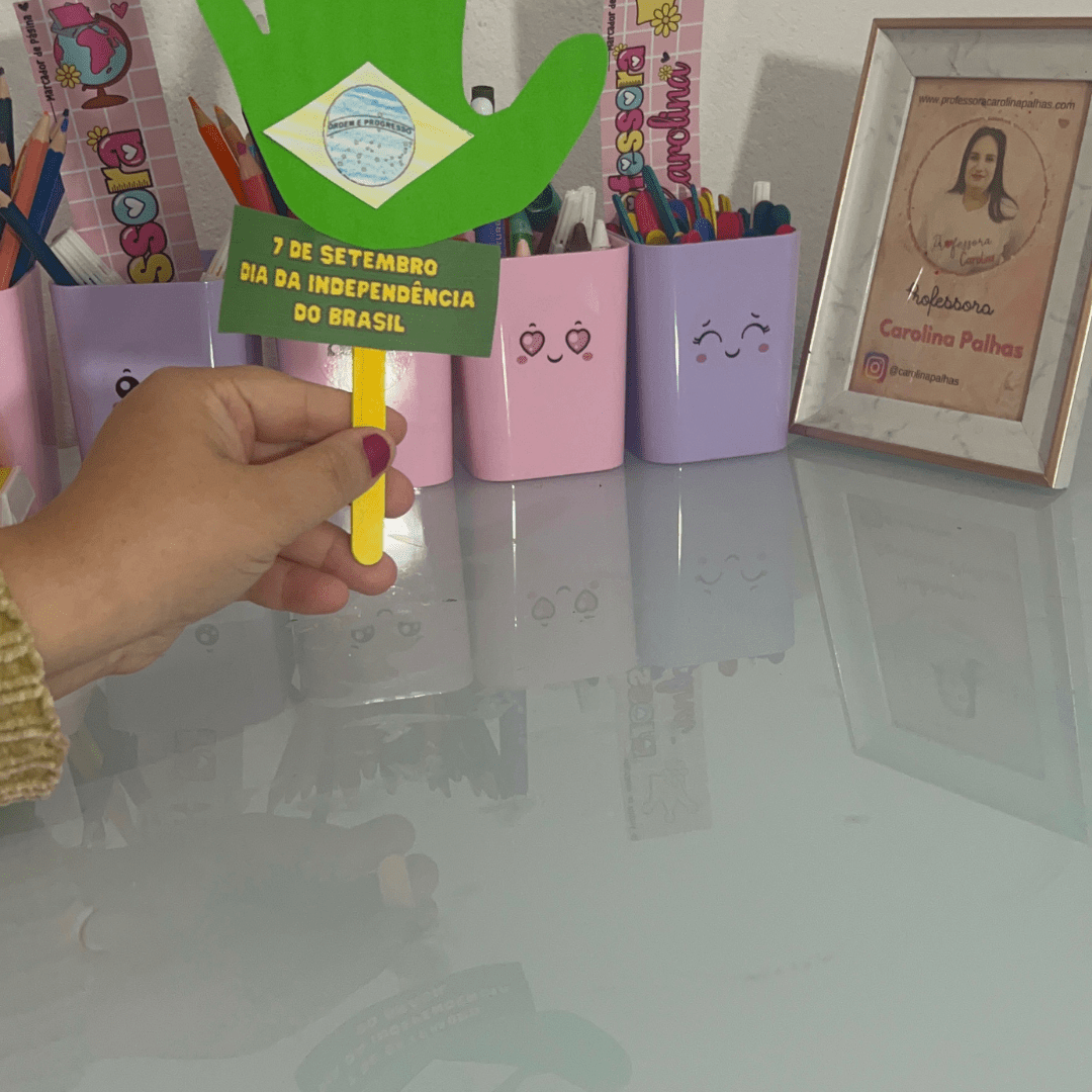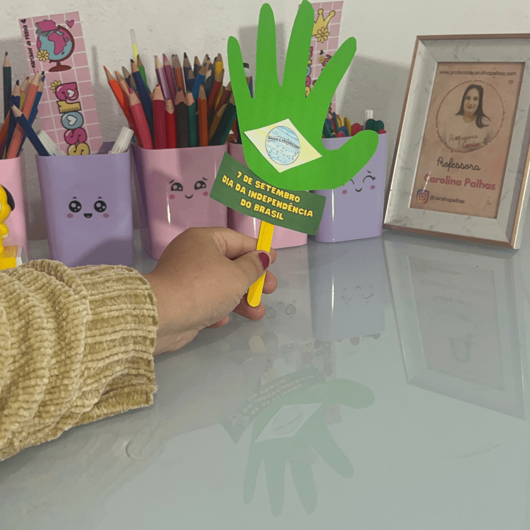 Que tal celebrar a Independência do Brasil com uma atividade criativa e lúdica para as crianças? Esta atividade propõe a criação de uma bandeira de mão temática, como a da imagem em anexo, que é uma excelente maneira de ensinar sobre os símbolos nacionais e o significado do 7 de setembro de forma divertida e interativa.