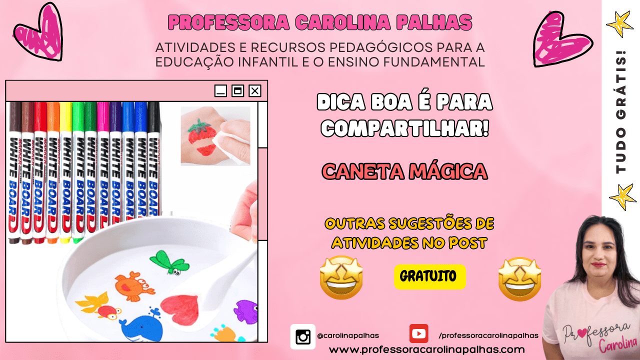 Professora Carolina Palhas é uma entusiasta da educação infantil e tecnologia. Com mais de 11 anos de experiência, ela compartilha suas ideias e planos pedagógicos em seu blog e Instagram, ajudando professores e mães a promoverem um aprendizado significativo e divertido para as crianças.