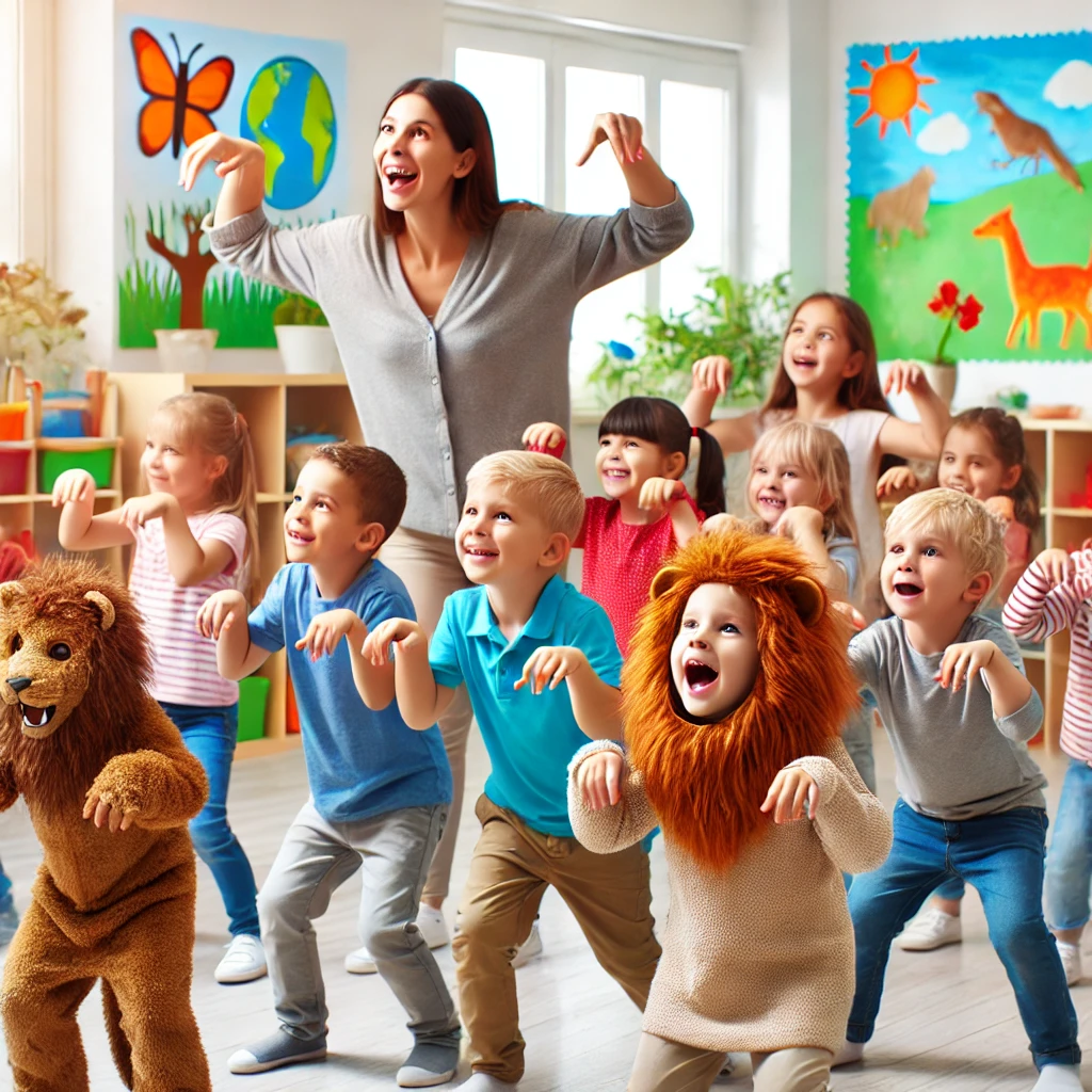 Organize um jogo onde as crianças imitam animais ou objetos do cotidiano. Essa atividade não só é divertida, mas também ajuda na coordenação motora e no entendimento de diferentes conceitos.Sugestão de imagem: