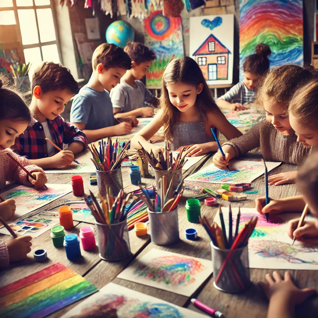 Crie um espaço na sala onde as crianças possam desenhar livremente com diferentes materiais, como lápis de cor, giz de cera, e tintas. Incentive-as a expressar suas emoções e ideias através da arte.Sugestão de imagem: