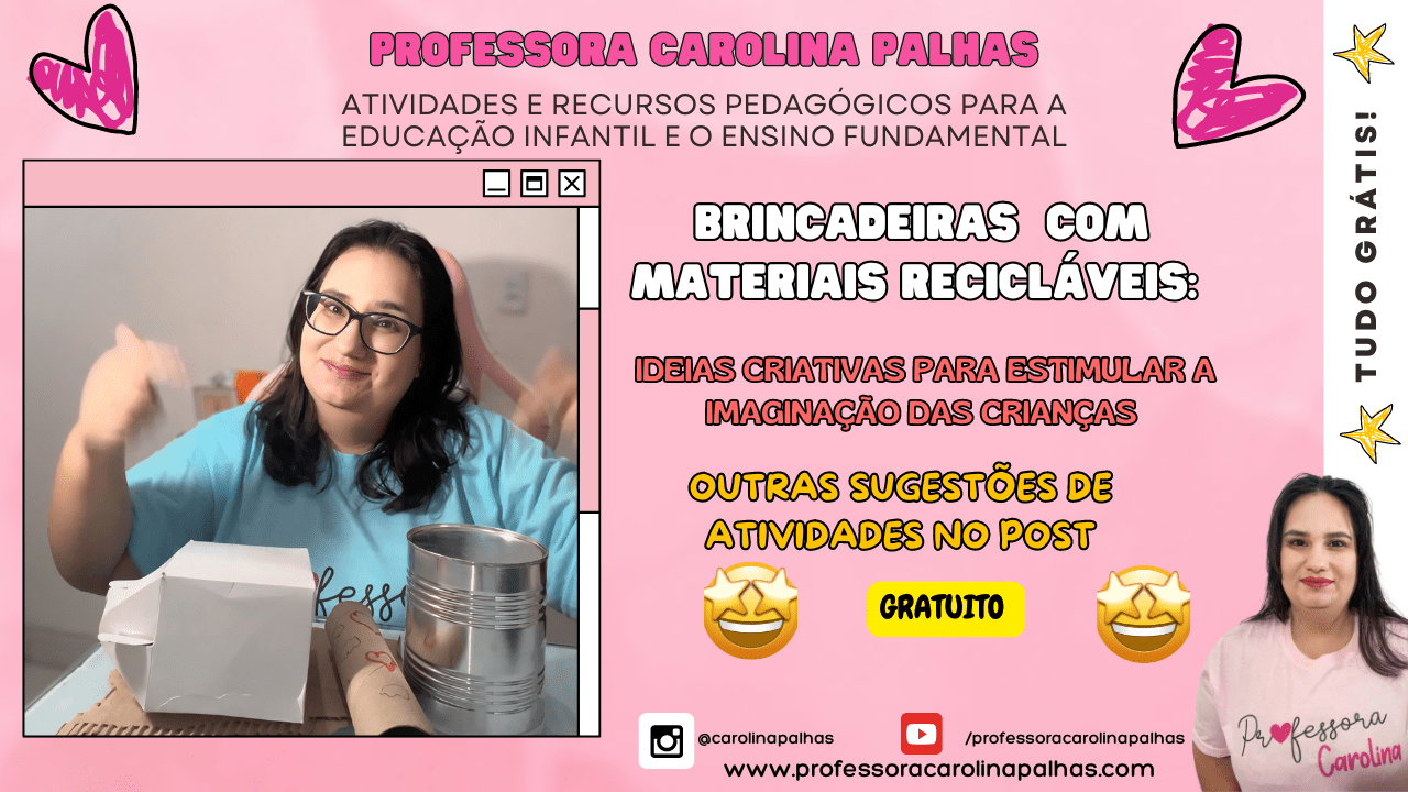Professora Carolina Palhas é uma entusiasta da educação infantil e tecnologia. Com mais de 11 anos de experiência, ela compartilha suas ideias e planos pedagógicos em seu blog e Instagram, ajudando professores e mães a promoverem um aprendizado significativo e divertido para as crianças.