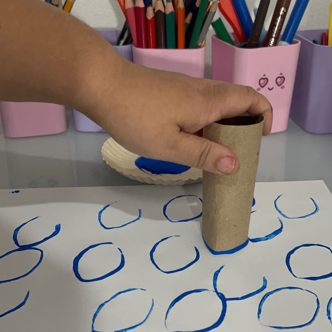 - Mergulhe a ponta do rolo na tinta e carimbe no papel, criando padrões e desenhos.