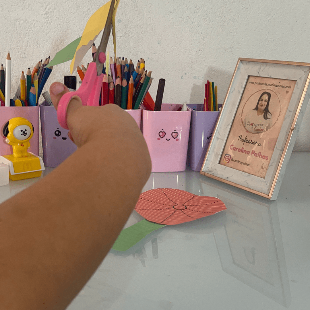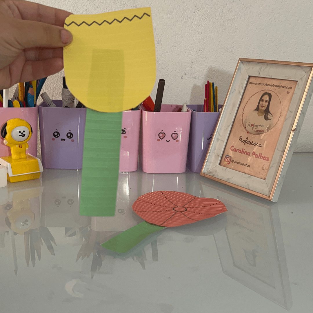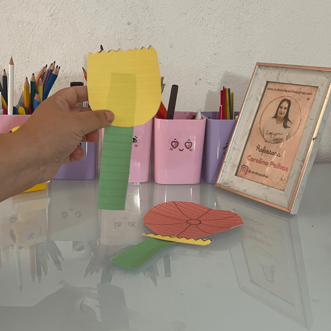 - Preparação das Flores: Antes de iniciar a atividade, desenhe ou imprima moldes de flores em folhas de papel colorido. Certifique-se de que as linhas são bem definidas para facilitar o corte pelas crianças.