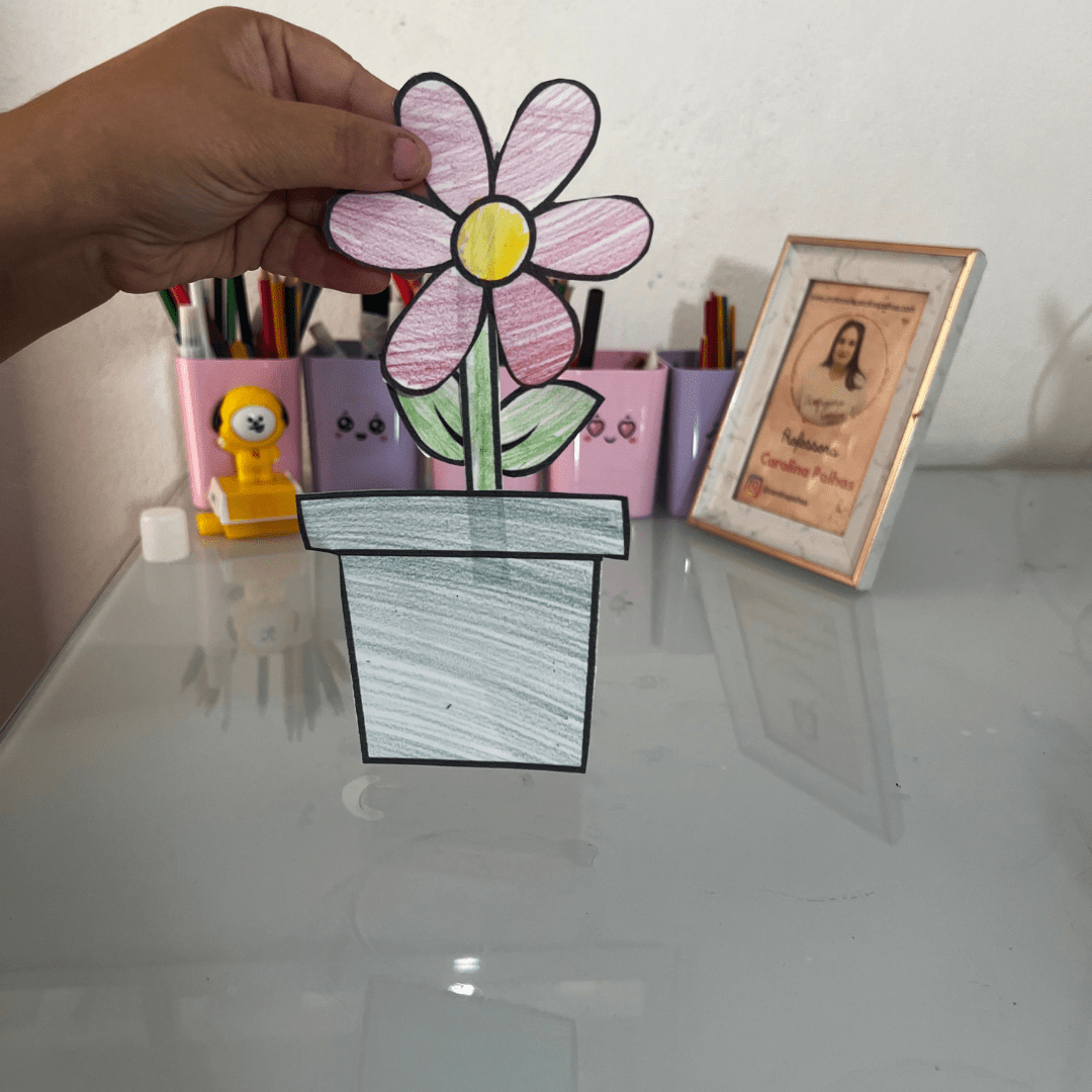 - Montagem das Flores: As crianças podem começar a montar suas flores, colando as pétalas e as folhas no caule e, em seguida, fixando o caule no vaso de papel. Incentive-as a criar combinações de cores e a personalizar cada detalhe da flor.