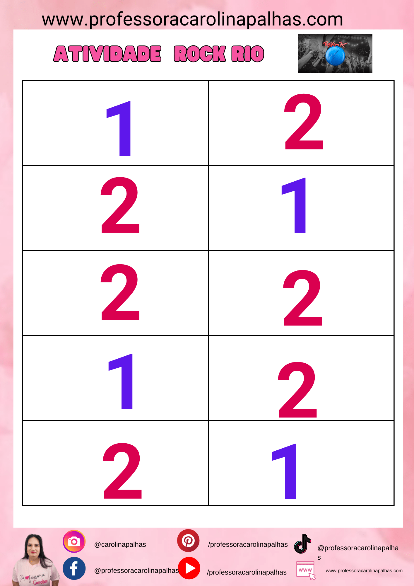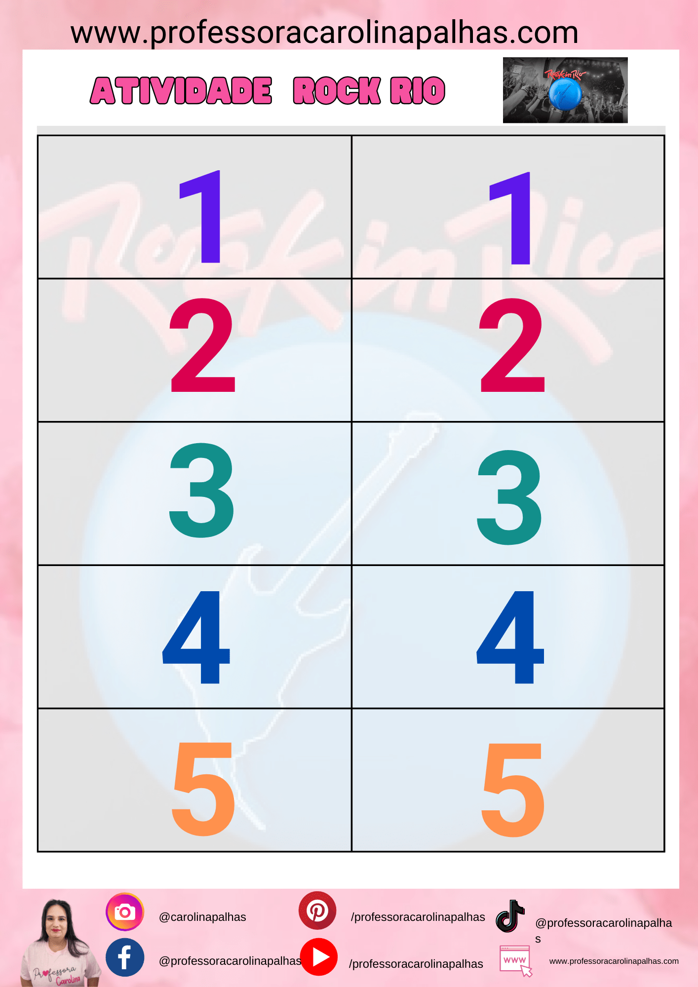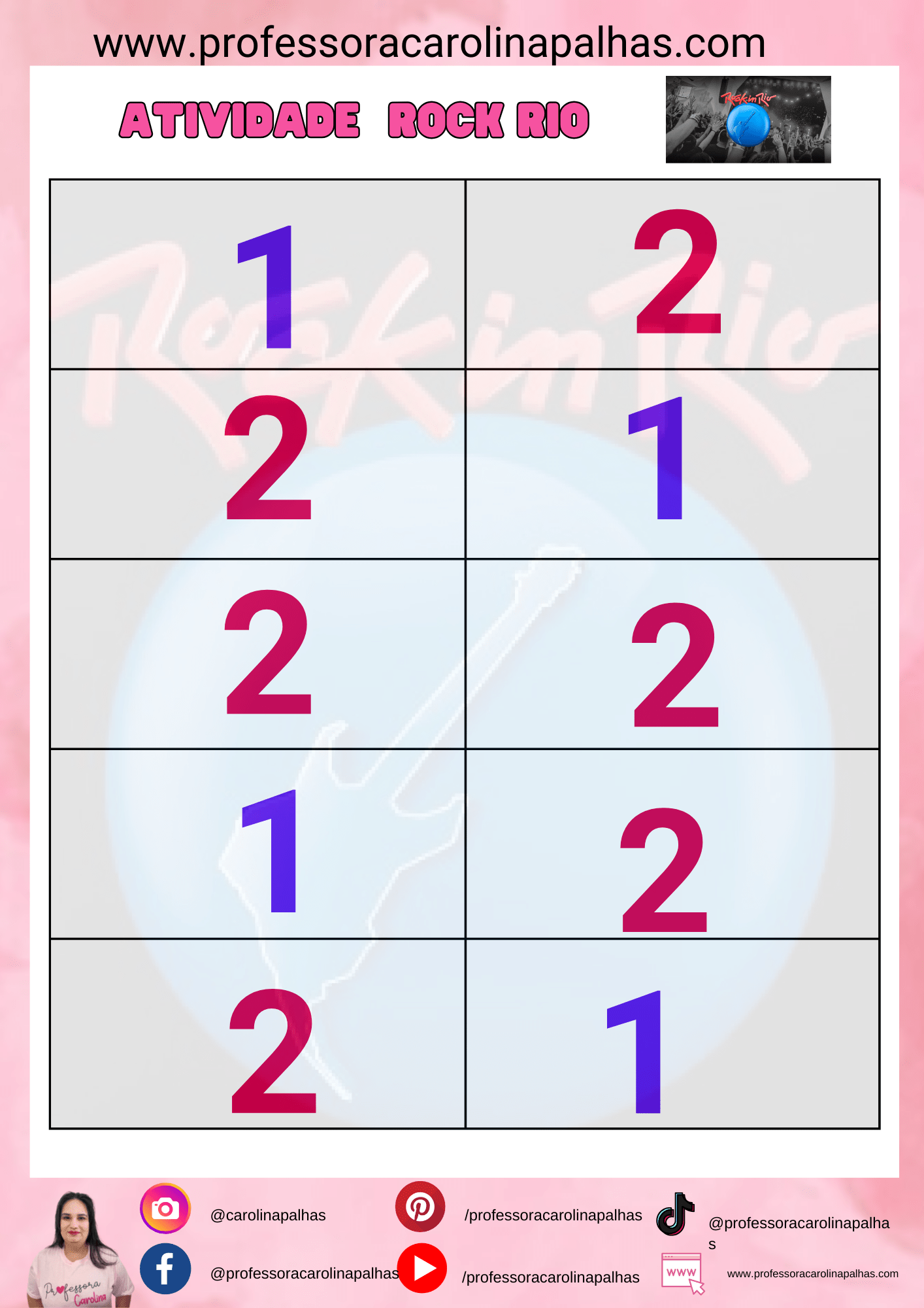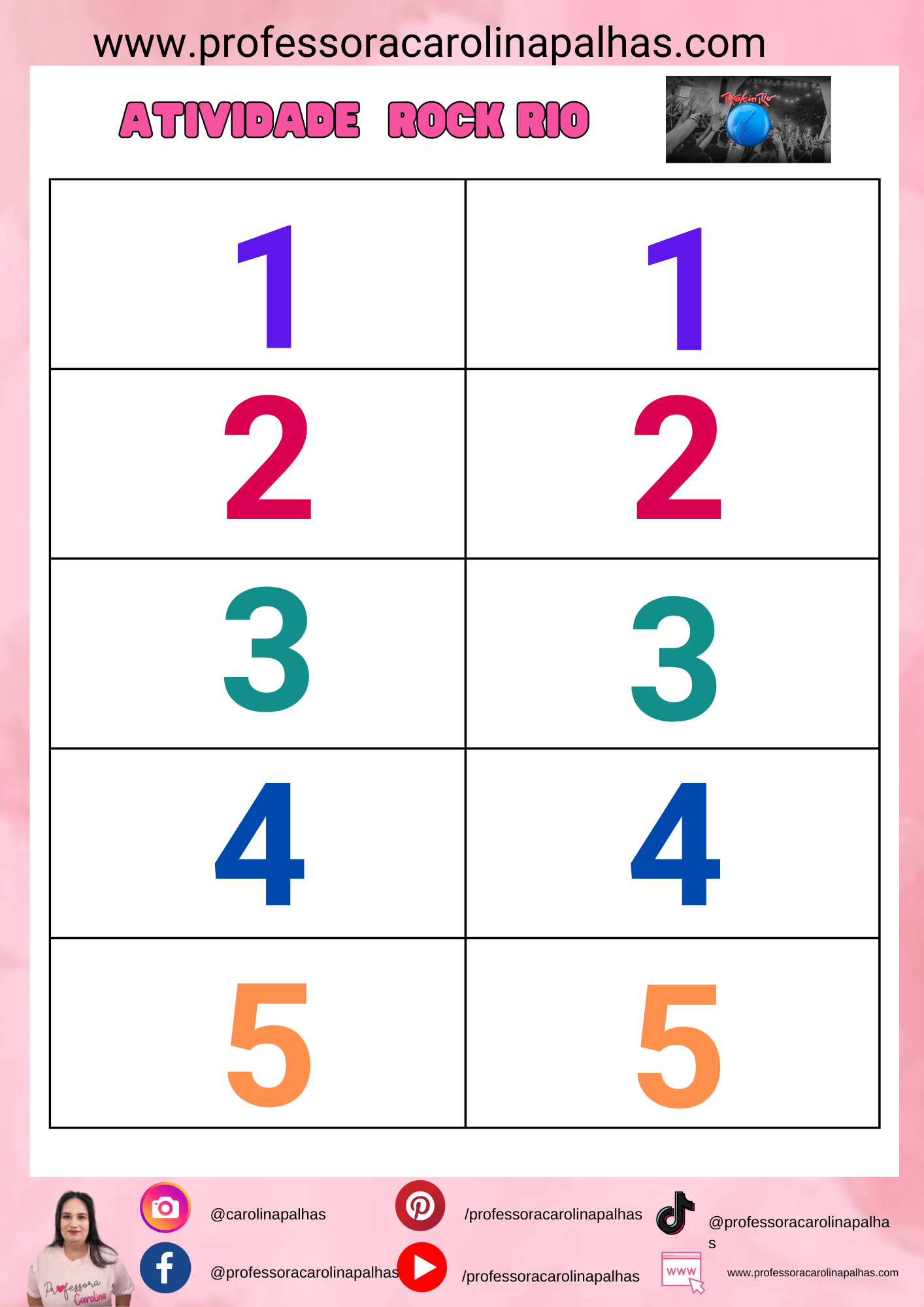 Palavras-chave: Rock in Rio, números, sequência, memória, atividade pedagógica, coordenação motora, educação infantil, professoras, sala de aula, música.