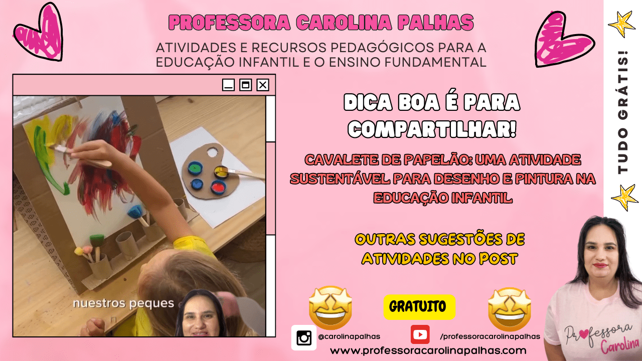 Professora Carolina Palhas é uma entusiasta da educação infantil e tecnologia. Com mais de 11 anos de experiência, ela compartilha suas ideias e planos pedagógicos em seu blog e Instagram, ajudando professores e mães a promoverem um aprendizado significativo e divertido para as crianças.