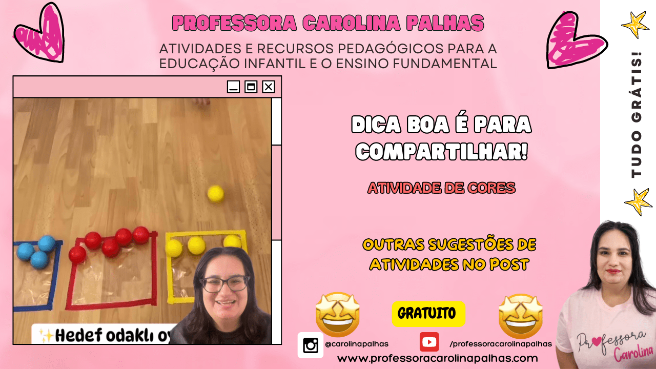 Palavras-chave: coordenação motora, educação infantil, cores, atividades lúdicas, desenvolvimento infantil, motricidade, aprendizado lúdico, brincadeiras educativas, atividades motoras, atividades com bolas, organização na sala de aula, interação infantil, habilidades motoras finas, cores primárias, aprendizagem, atividades práticas, pedagogia, jogos educativos, atividades para crianças, educação lúdica.