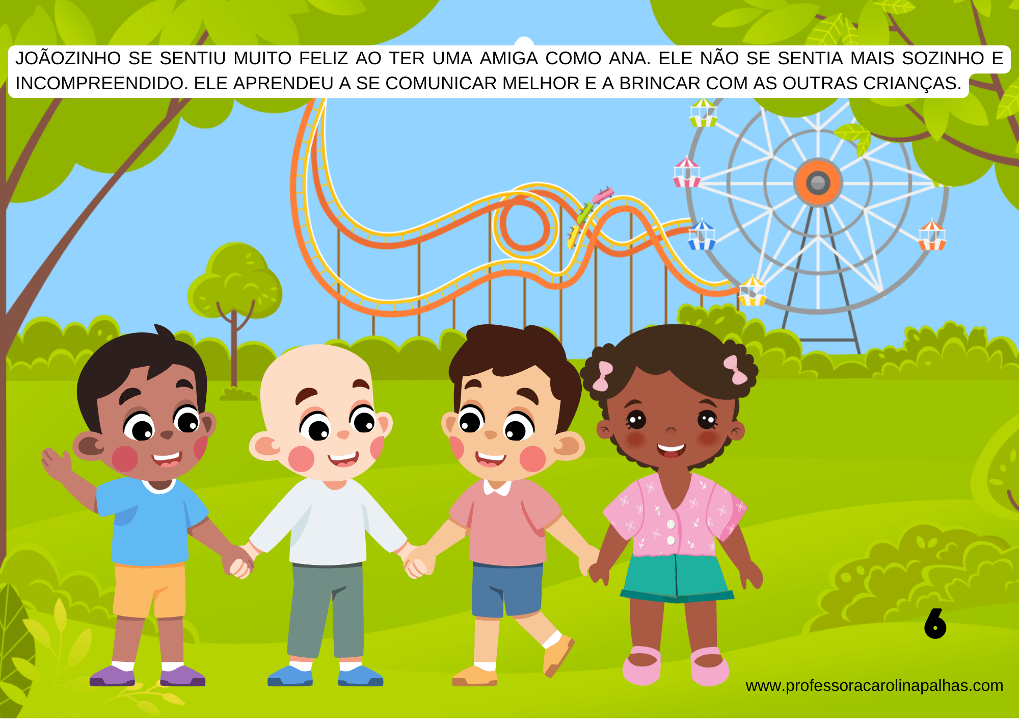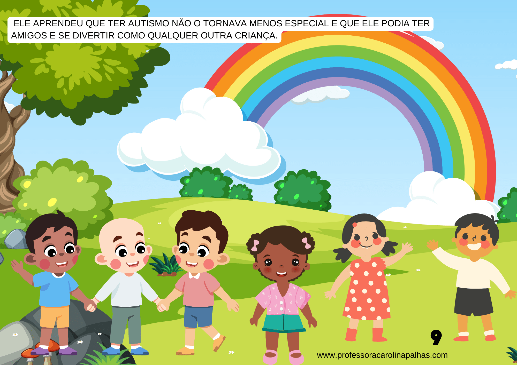 Palavras-chave: inclusão, autismo, amizade, educação infantil, atividades pedagógicas, respeito, empatia, desenvolvimento infantil, BNCC, crianças, sala de aula, diversidade, pedagogia, aprendizagem, habilidades sociais, brincar e aprender, histórias infantis, atividades lúdicas, construção de amizades, cooperação, ensino inclusivo.