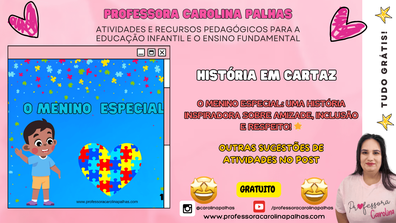No post de hoje, vamos falar sobre uma história linda e emocionante chamada “O Menino Especial”, que tem como protagonistas Joãozinho, uma criança com autismo, e Ana, sua amiga que o ajuda a se sentir mais feliz e aceito por todos. Essa narrativa nos ensina sobre o poder da amizade, do respeito às diferenças e da inclusão no ambiente escolar.