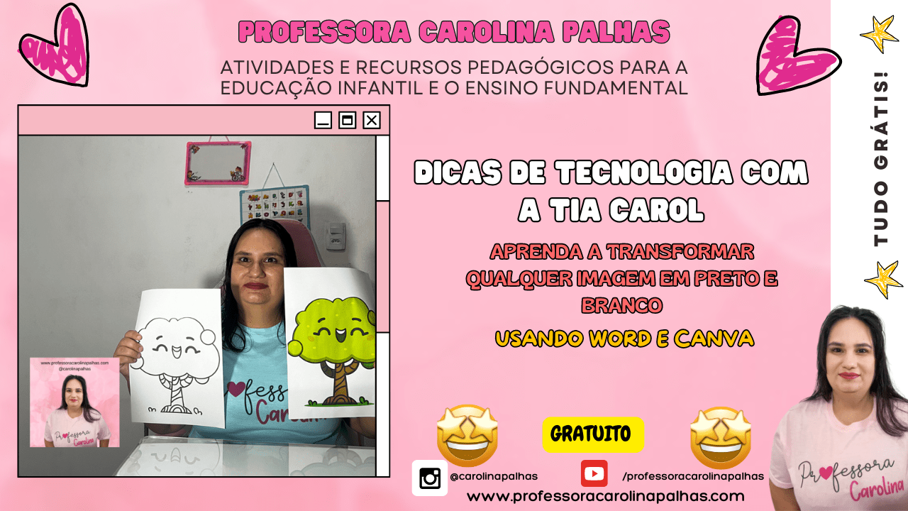 QUADRO DICAS DE TECNOLOGIA COM A TIA CAROL: APRENDA A TRANSFORMAR QUALQUER IMAGEM EM PRETO E BRANCO USANDO WORD E CANVA
