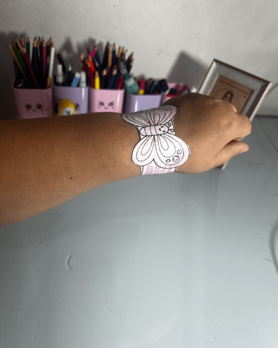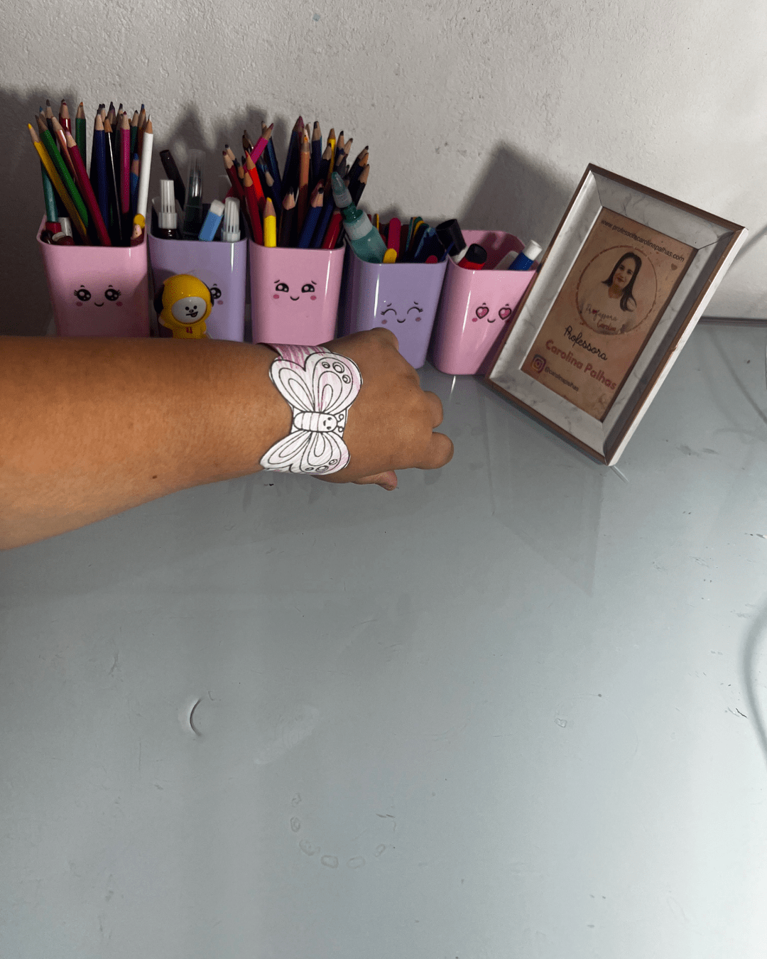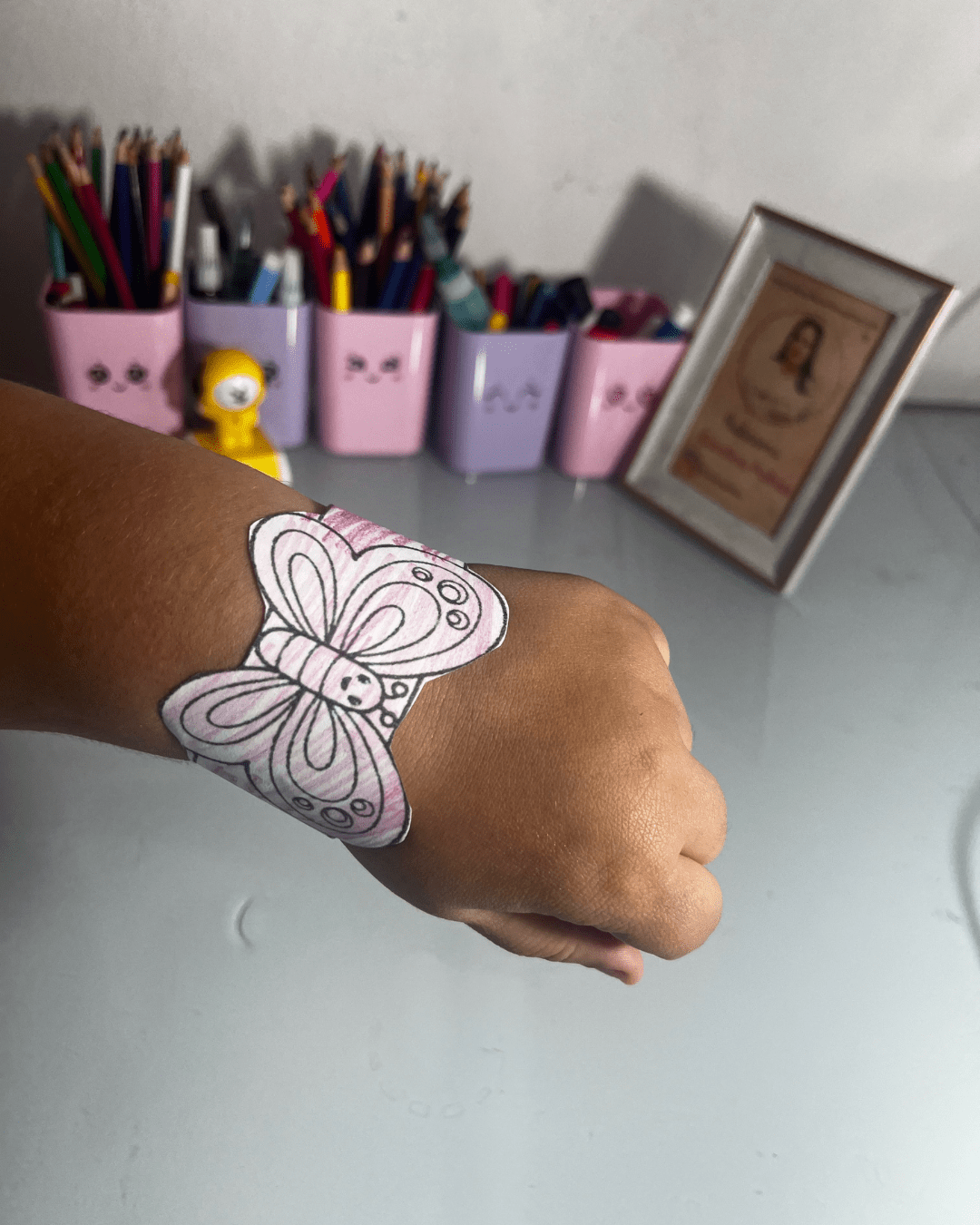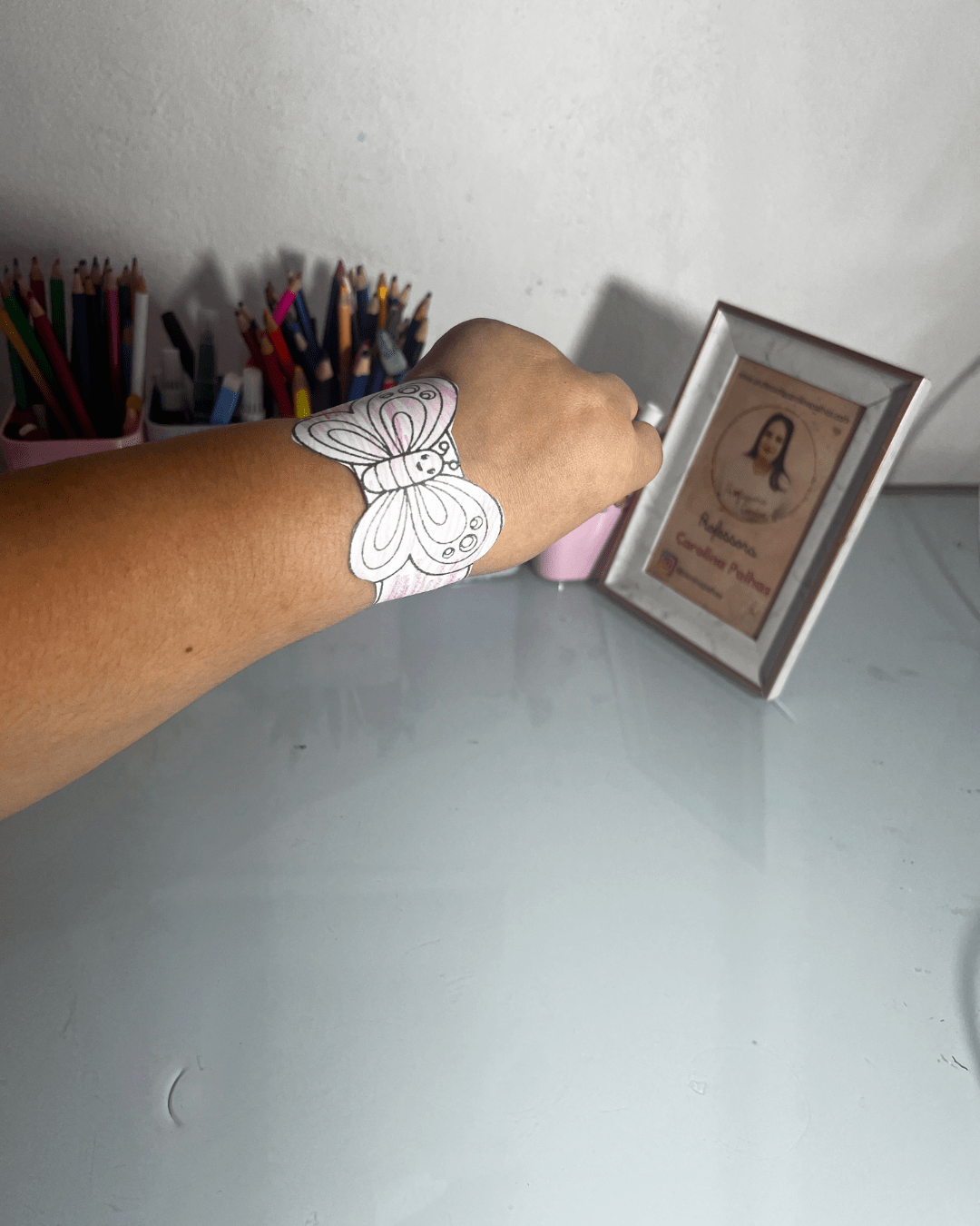 Frases-chave: pulseira de borboleta colorida, arte divertida, atividade prática