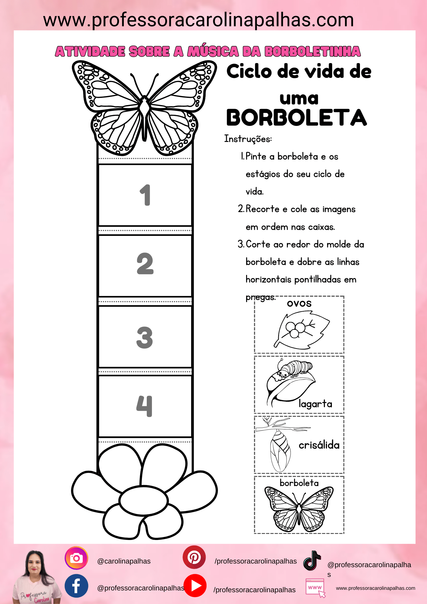 Frases-chave: ciclo de vida da borboleta, atividade interativa, compreensão da natureza