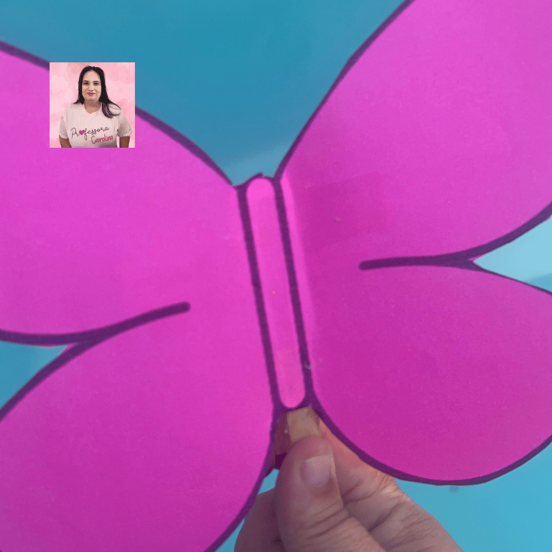 - Corte o molde da borboleta em uma folha colorida ou EVA.