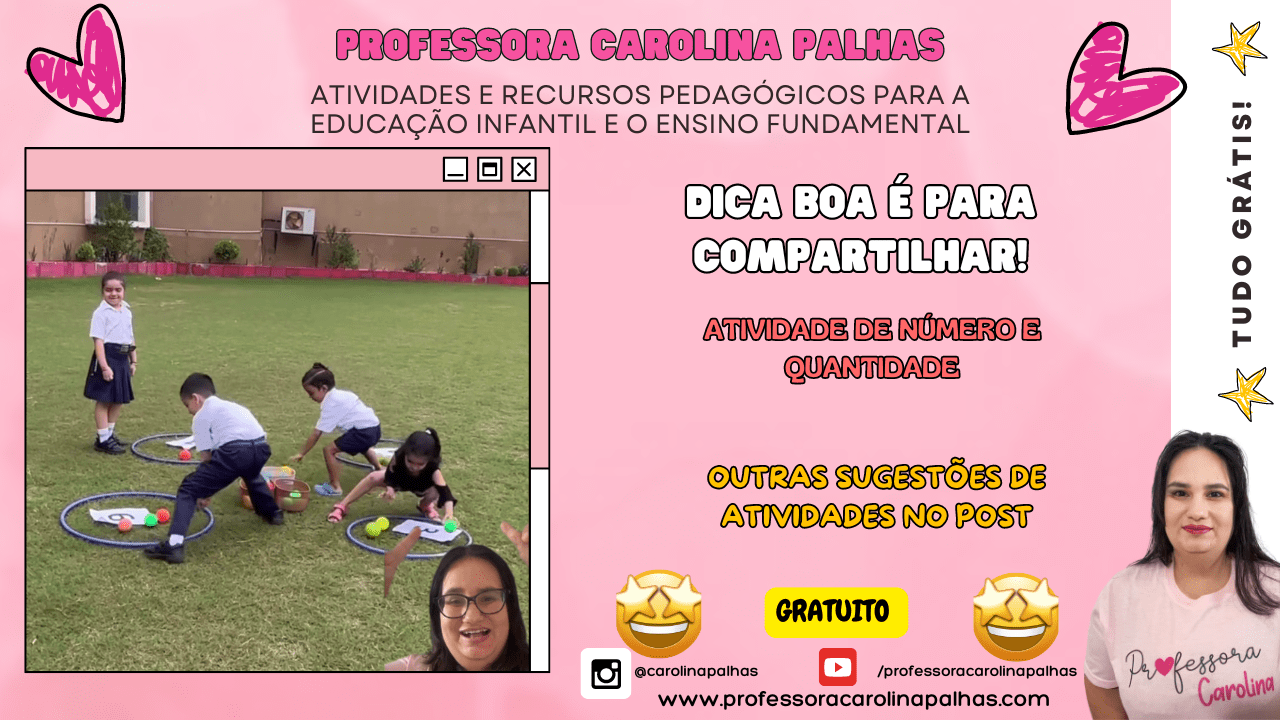 Palavras-chave: números, coordenação motora, atividade ao ar livre, brincadeira educativa, desenvolvimento infantil, habilidades motoras, BNCC, brincadeiras pedagógicas, atividades lúdicas, educação infantil, matemática para crianças, brincadeira com números, professora Carolina, desenvolvimento físico, atividades práticas