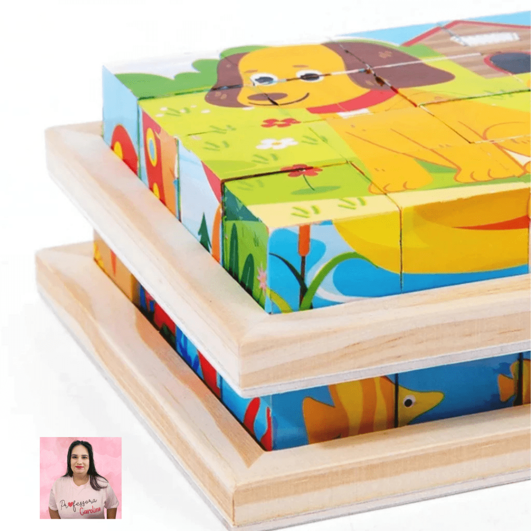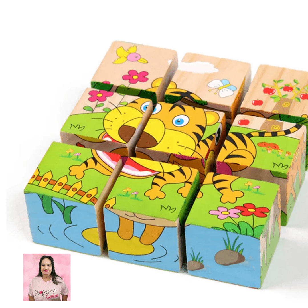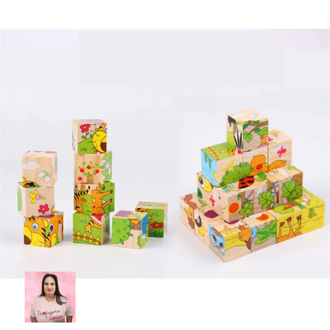 1. Montagem de Quebra-Cabeça: Desafie as crianças a montarem as imagens corretas com os cubos.