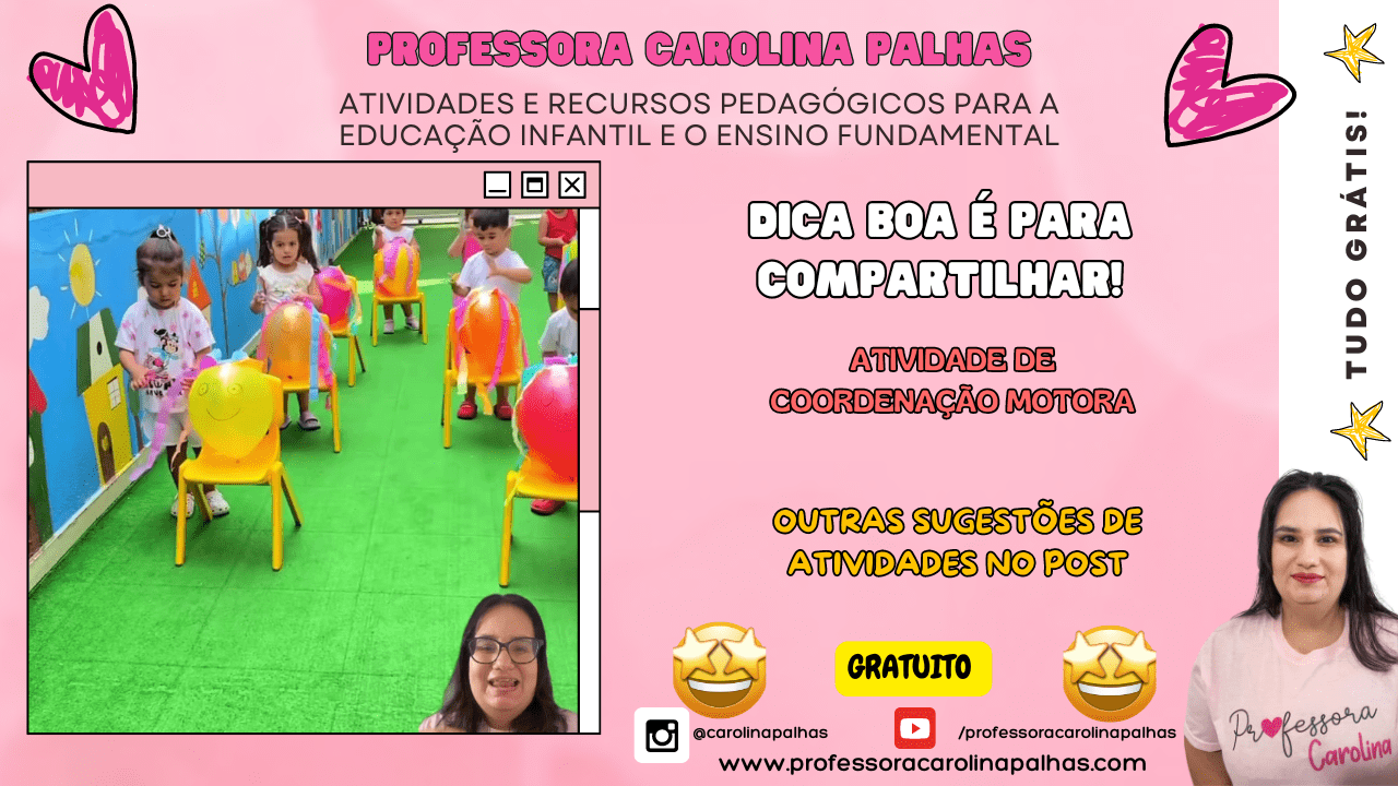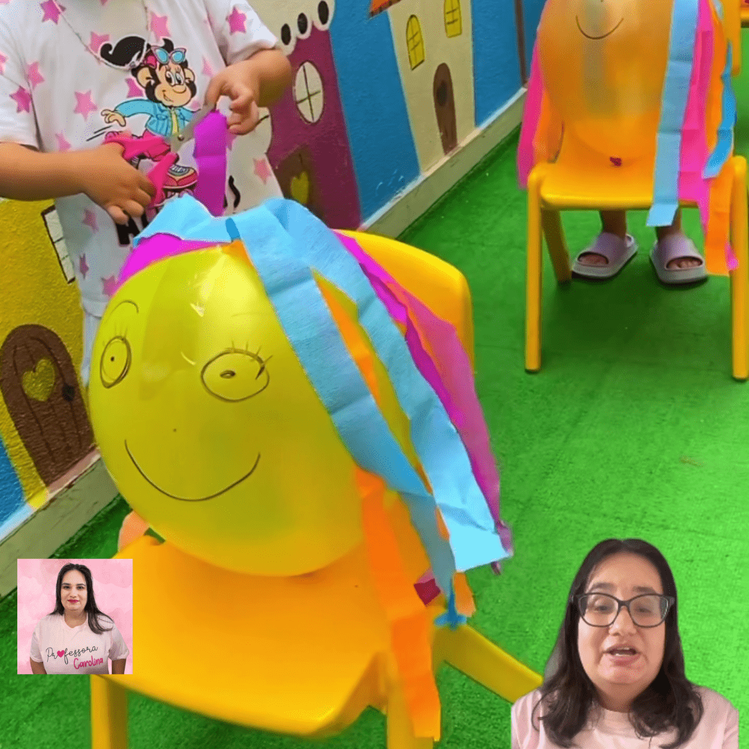 Palavras-chave: balões, papel crepom, atividade criativa, educação infantil, desenvolvimento motor, atividades lúdicas, BNCC, habilidades motoras, professoras, imaginação infantil, atividades manuais, coordenação motora, atividades para sala de aula, professora Carolina, aprendizado criativo