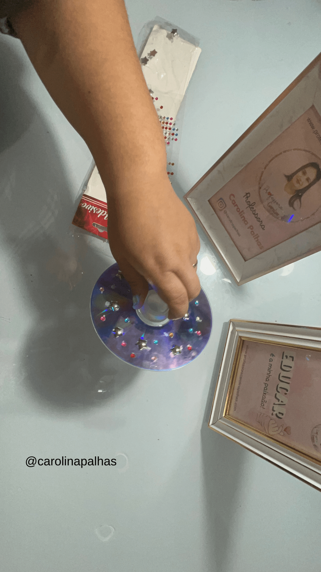 Passo 3: Decorando o Pião (opcional) Use canetinhas coloridas ou tinta para decorar o CD e deixar o seu pião ainda mais personalizado.