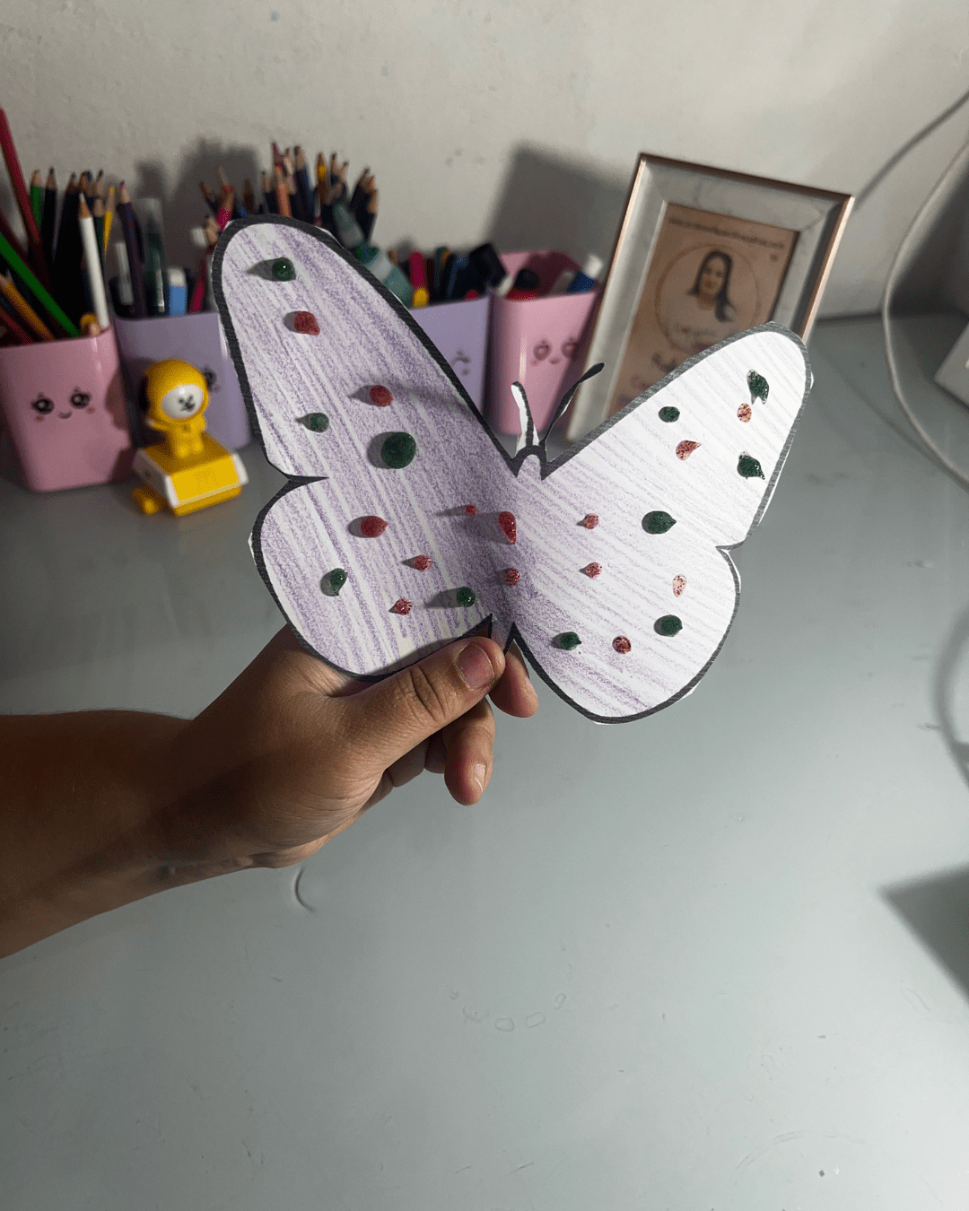 5. Pintura de borboletas com tinta relevo.