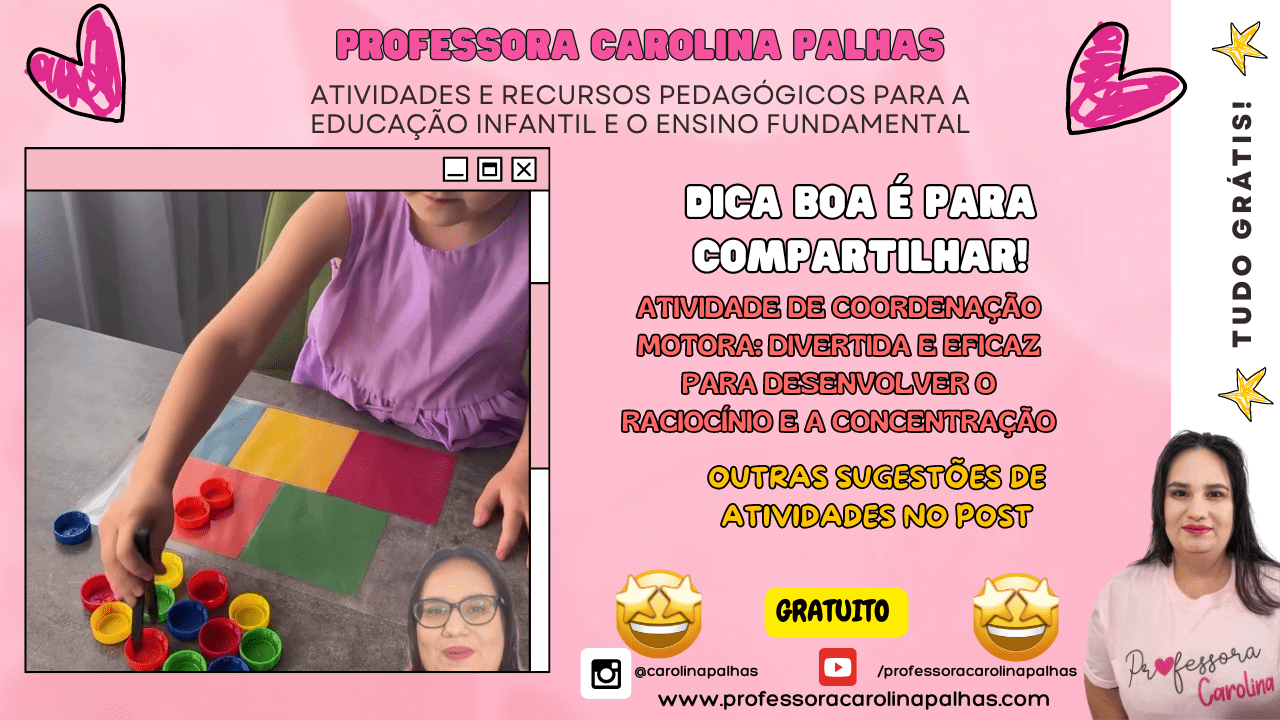 Palavras-chave: coordenação motora fina, educação infantil, atividade lúdica, cores, brincadeiras educativas, desenvolvimento motor, pinça pedagógica, aprendizagem divertida, atividades práticas, pedagogia criativa