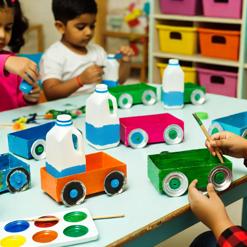 5. Pronto! Agora as crianças podem brincar com seus carrinhos recicláveis.