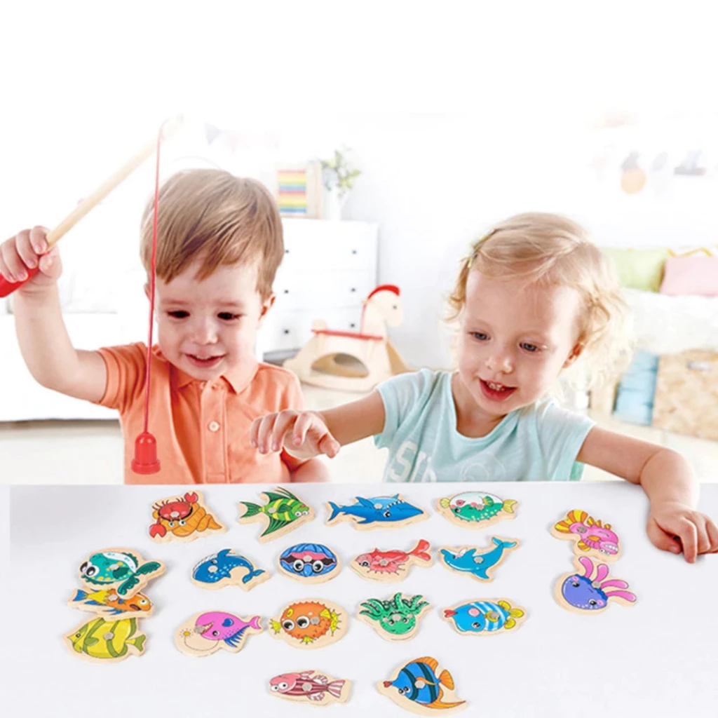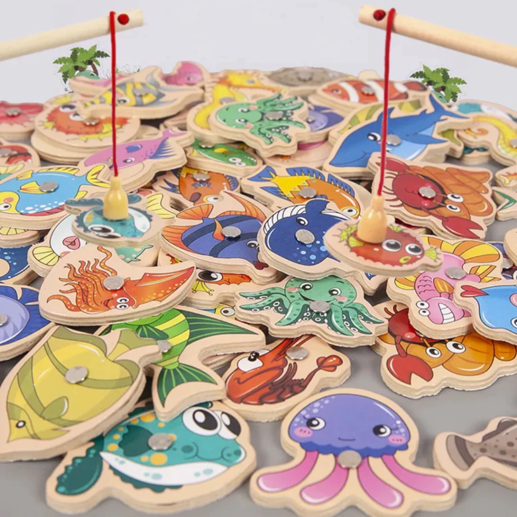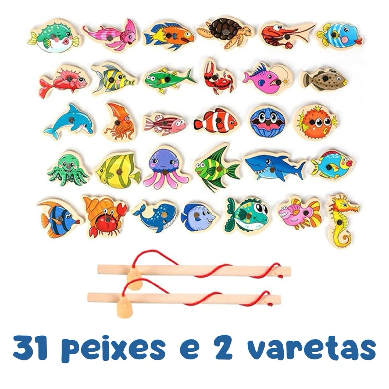 - Desafio de coordenação motora: crie obstáculos onde as crianças devem usar a vara de pesca para pegar os peixes sem tocar nos obstáculos.