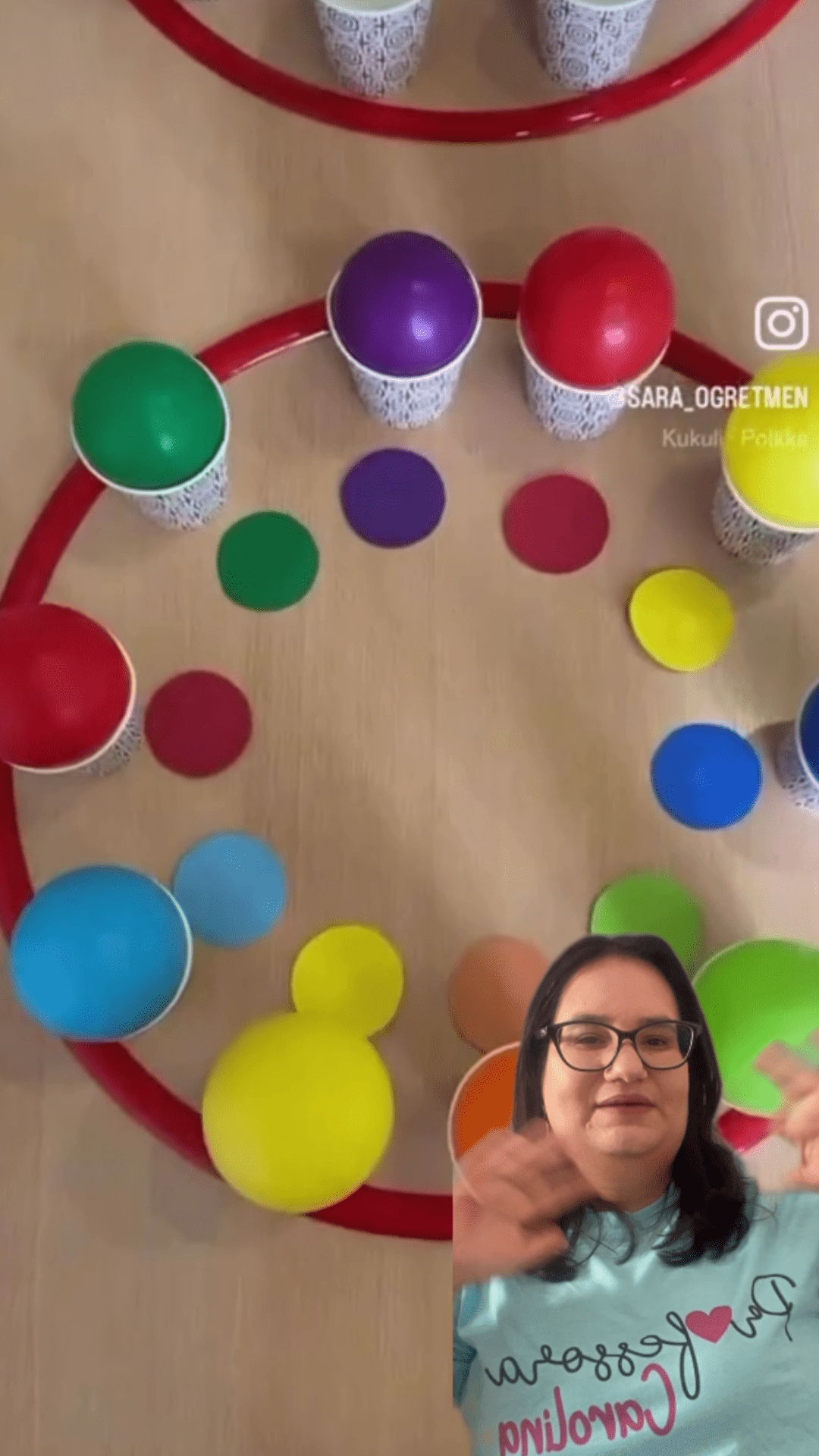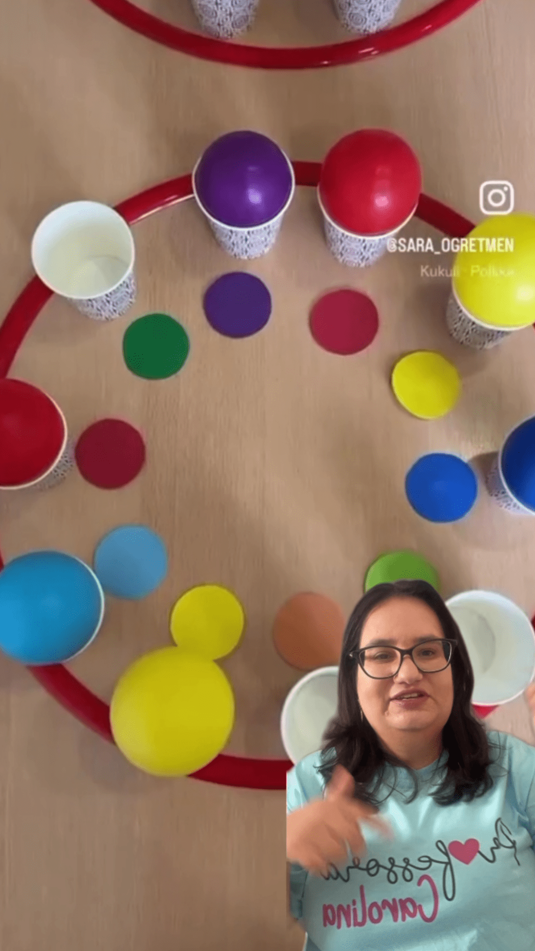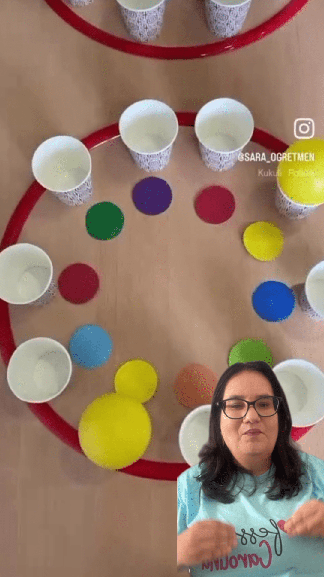 - As crianças devem combinar as cores das bolas com os copos corretos, jogando ou colocando as bolas nos respectivos copos.