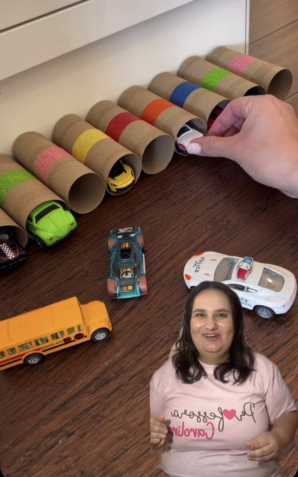 Frases-chave: atividade com carrinhos coloridos, como organizar os carrinhos das crianças, brinquedos educativos da Shopee, organização e brincadeira com carrinhos, reciclagem e educação.