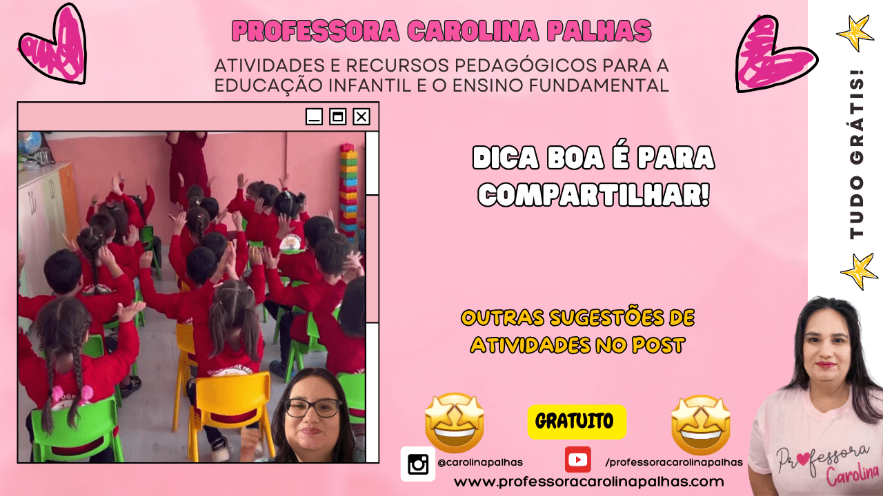 ✨ Está procurando atividades divertidas e pedagógicas para realizar com seus alunos da educação infantil? Confira essas sugestões GRATUITAS que promovem aprendizado e muita interação em sala de aula! 🙌 Aproveite as ideias e faça seus pequenos se movimentarem e aprenderem com alegria! 🧠🎨