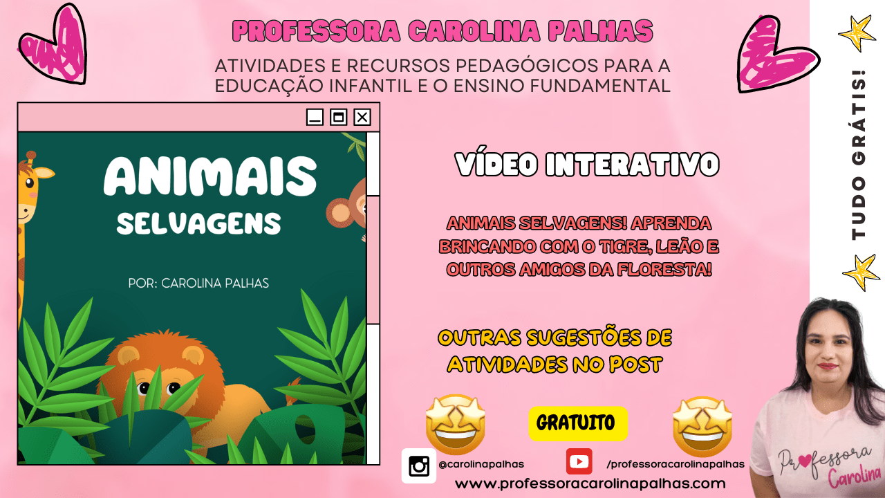 Palavras-chave: animais selvagens, atividades infantis, tigre, leão, girafa, cobra, animais para crianças, atividades lúdicas, YouTube Kids, ensino de animais, educação infantil, mundo animal, natureza, brincadeiras com animais, atividades educativas, aprendizagem lúdica, Carolina Palhas.