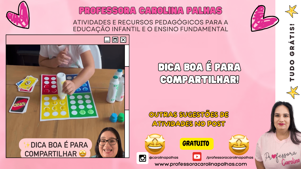 🎲 Use jogos simples e materiais coloridos para incentivar o aprendizado de forma lúdica e interativa! Além disso, outras sugestões de atividades estão no post, prontas para você usar na sala de aula ou em casa! 💡
