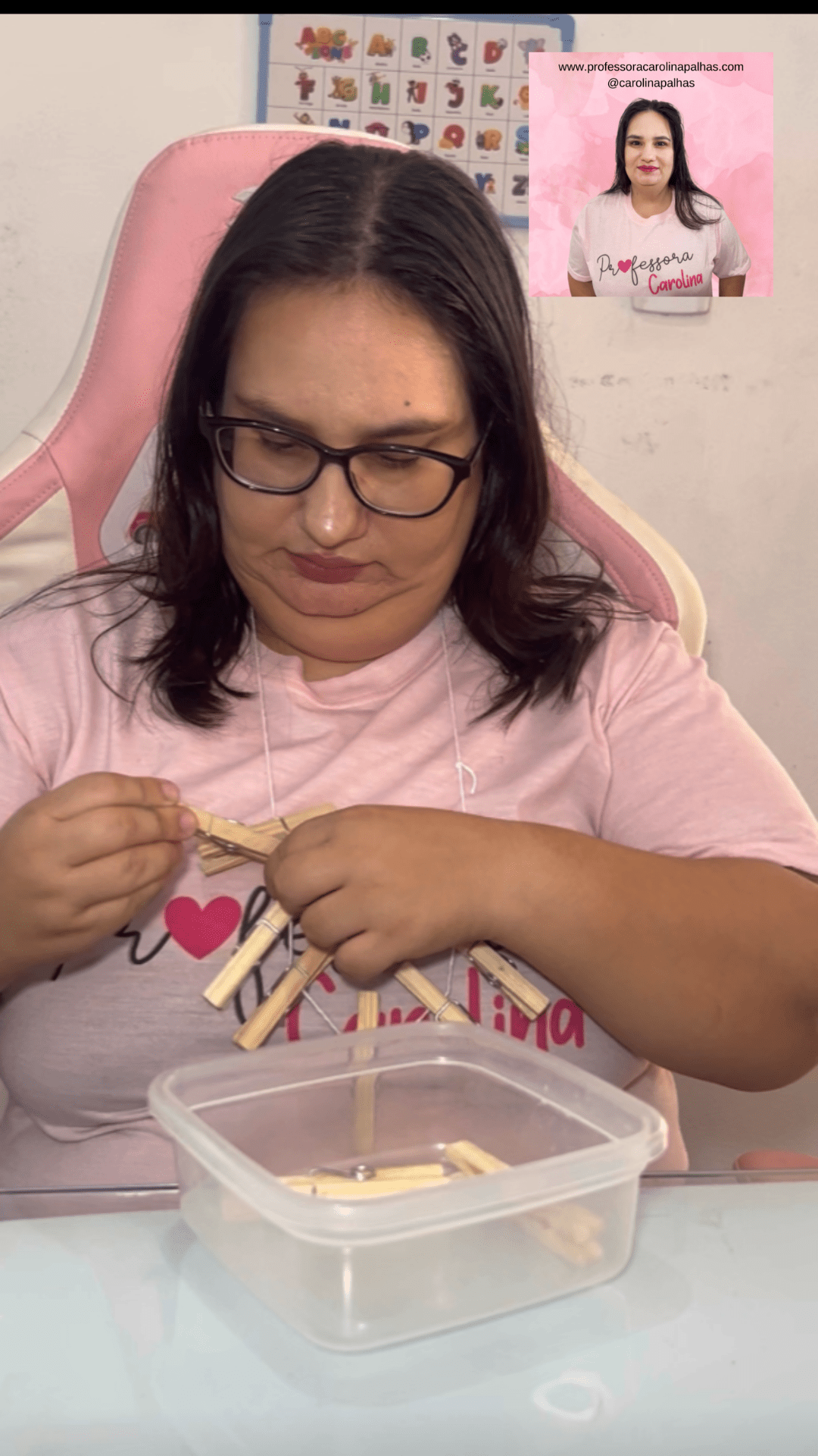 - Organização de letras com pregadores (colocar letras nas tampas e formar palavras).