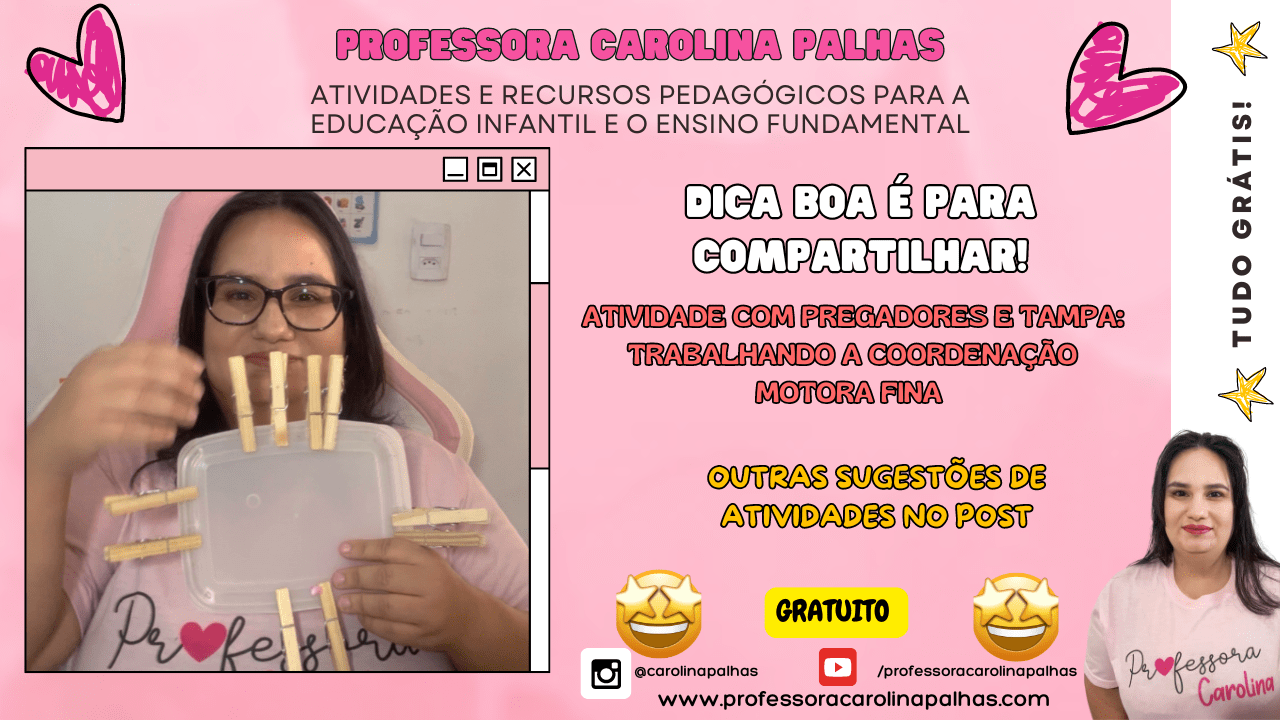 A motricidade fina é uma habilidade essencial a ser trabalhada com as crianças desde cedo, e nada melhor do que usar atividades práticas e divertidas para estimular o desenvolvimento. A atividade com pregadores e tampas de pote é um exemplo de como materiais simples podem ser transformados em ferramentas pedagógicas de alto impacto.