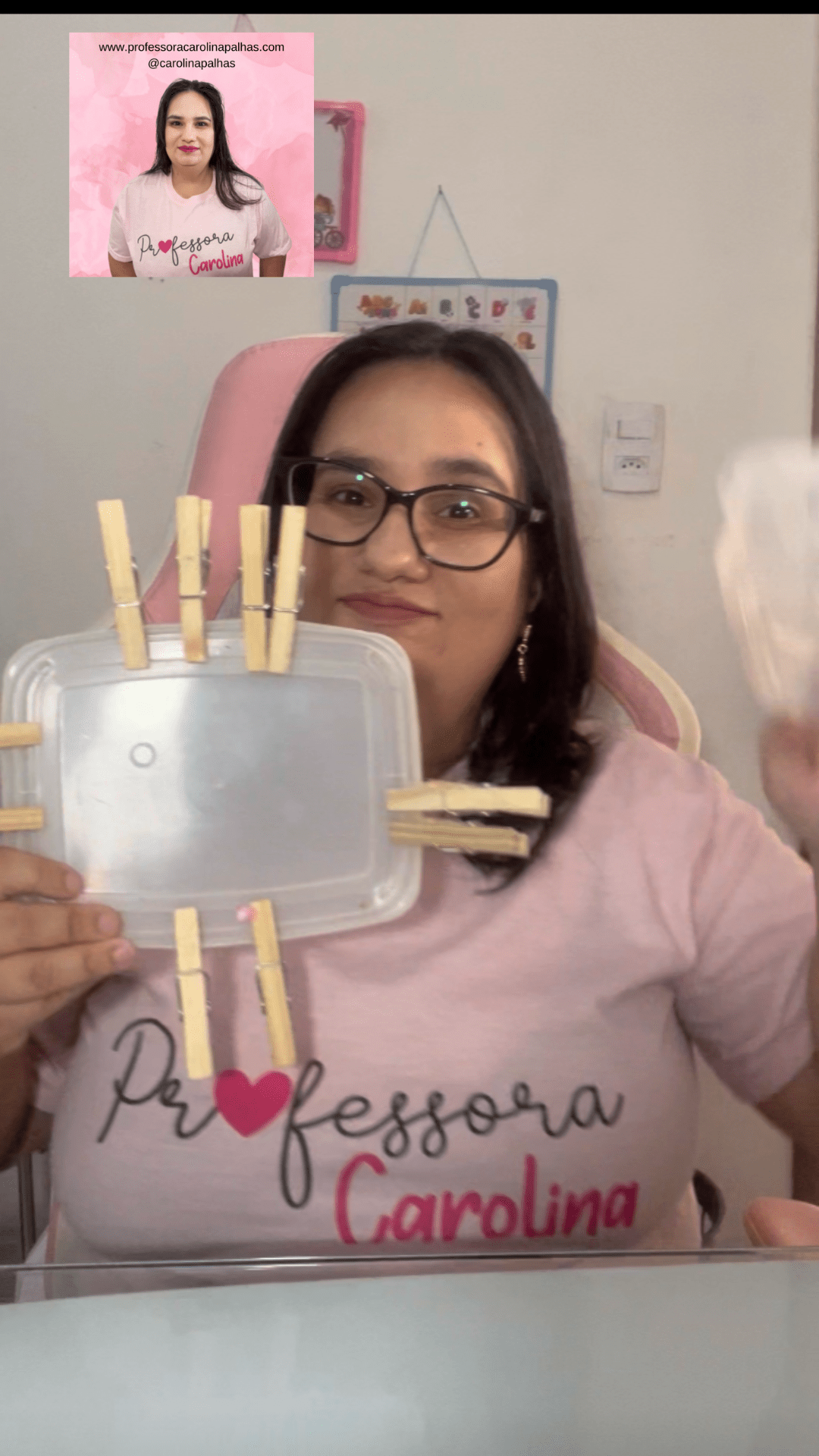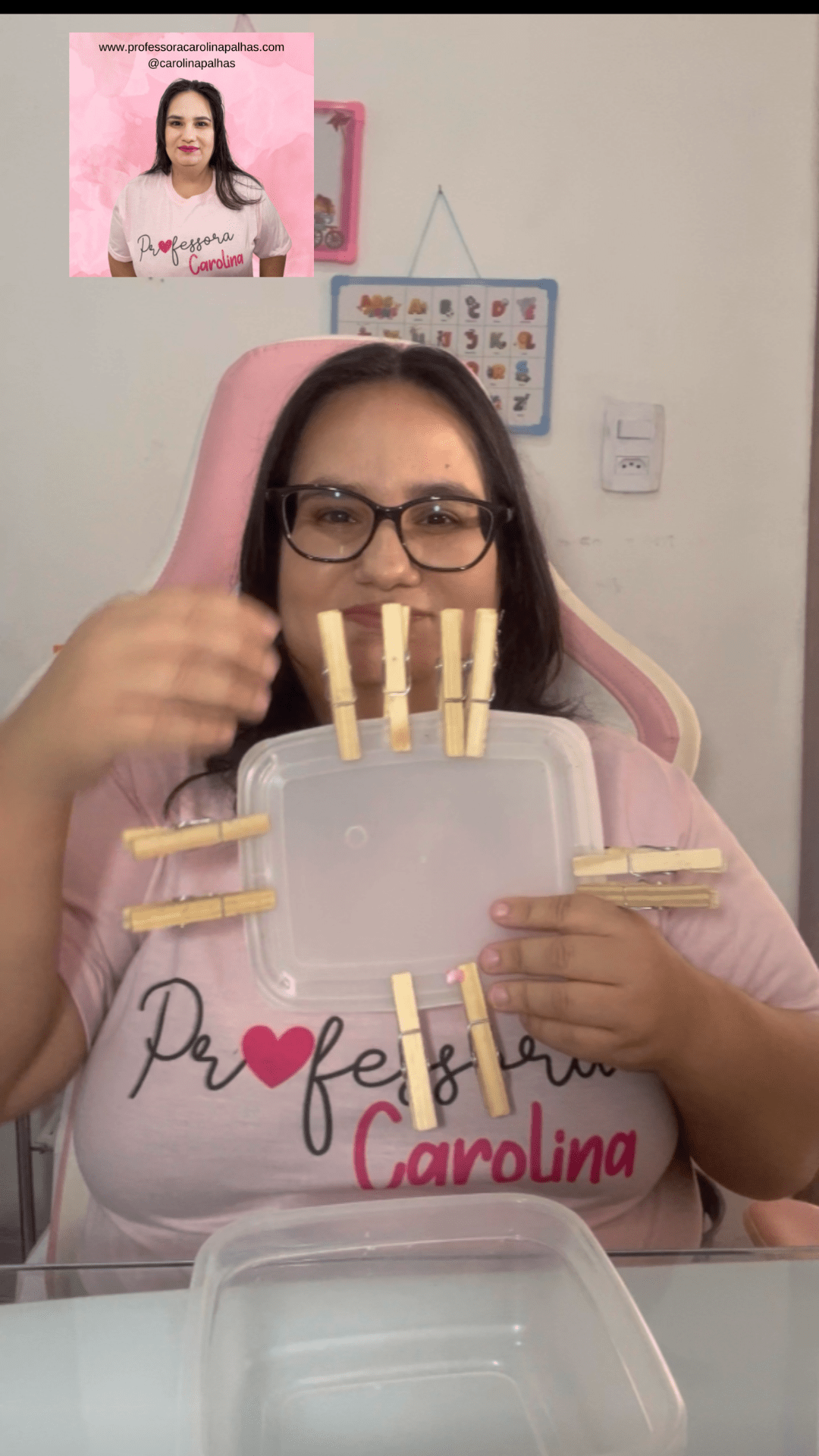 - Organização de letras com pregadores (colocar letras nas tampas e formar palavras).
