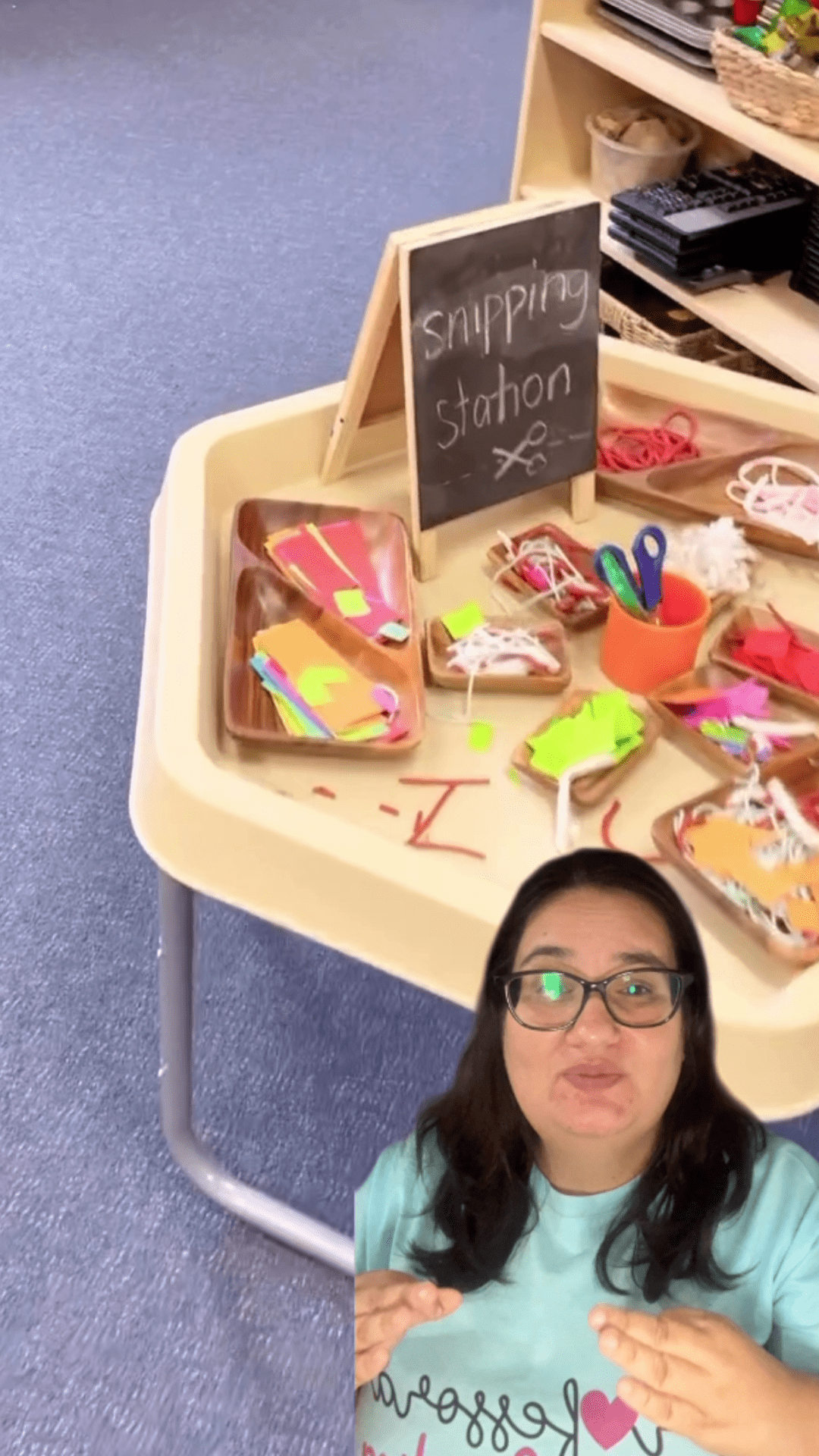 - Estação de Corte e Colagem: Disponha papéis coloridos, tesouras e cola. As crianças podem cortar e colar pedaços de papel para criar formas e figuras, trabalhando a coordenação motora fina.