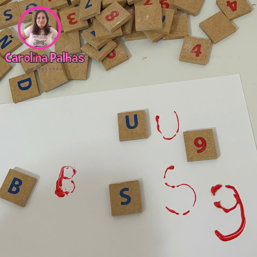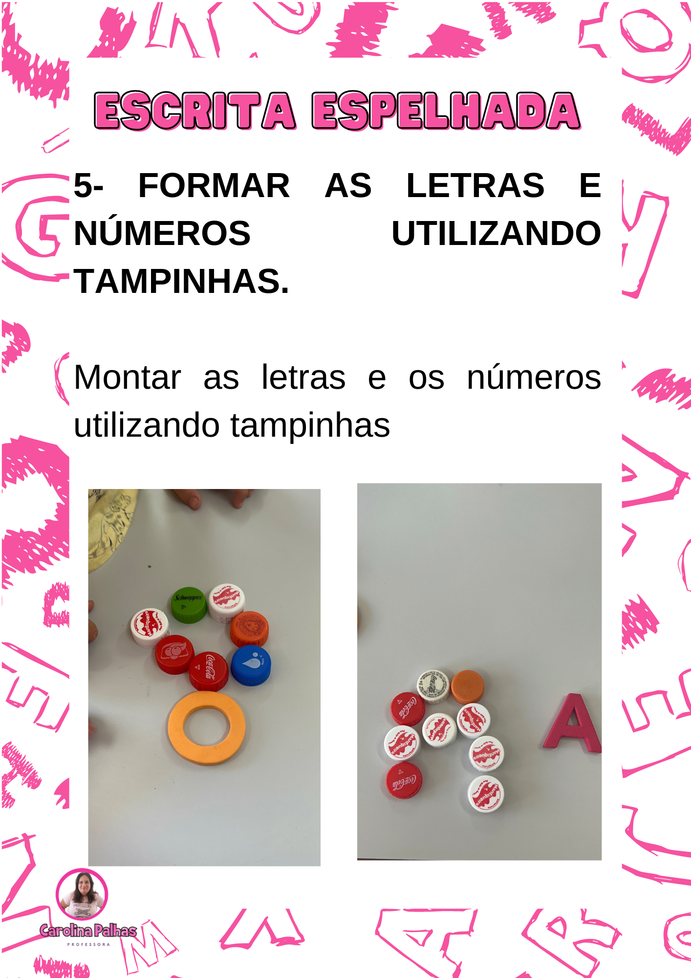 5- FORMAR AS LETRAS E NÚMEROS UTILIZANDO TAMPINHAS.