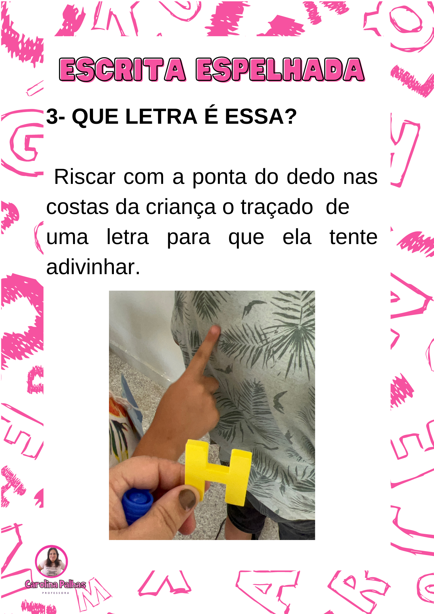 Riscar com a ponta do dedo nas costas da criança o traçado de uma letra para que ela tente adivinhar.