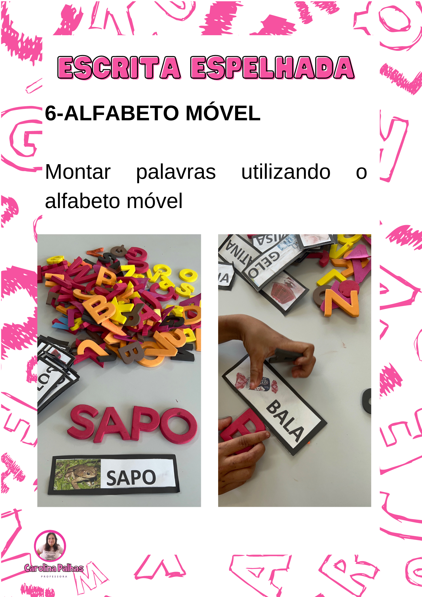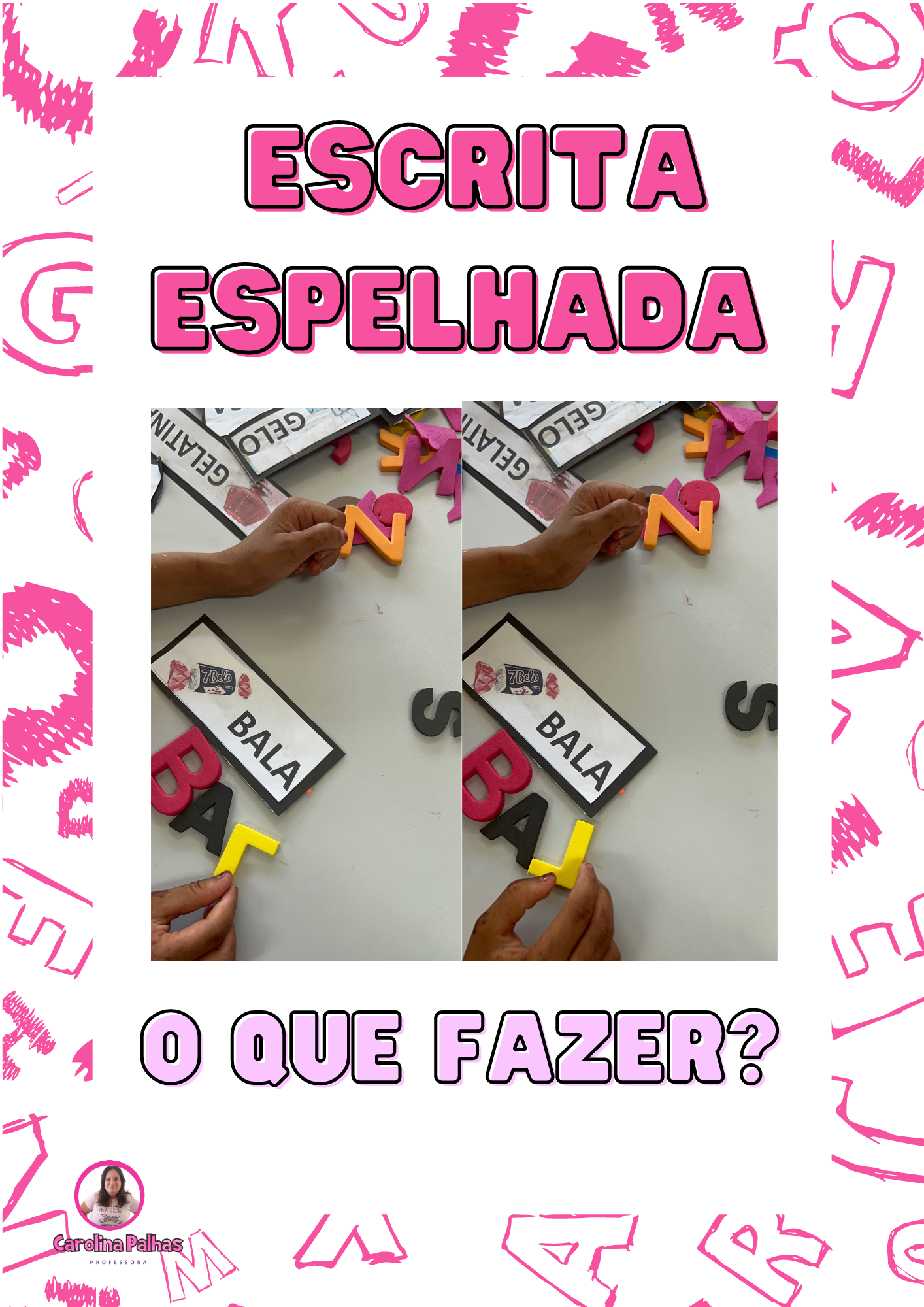 Quando a criança escreve espelhado, o(a) professor(a) deve questioná-lo se a letra está correta, procurando fazer com que perceba a diferença.
