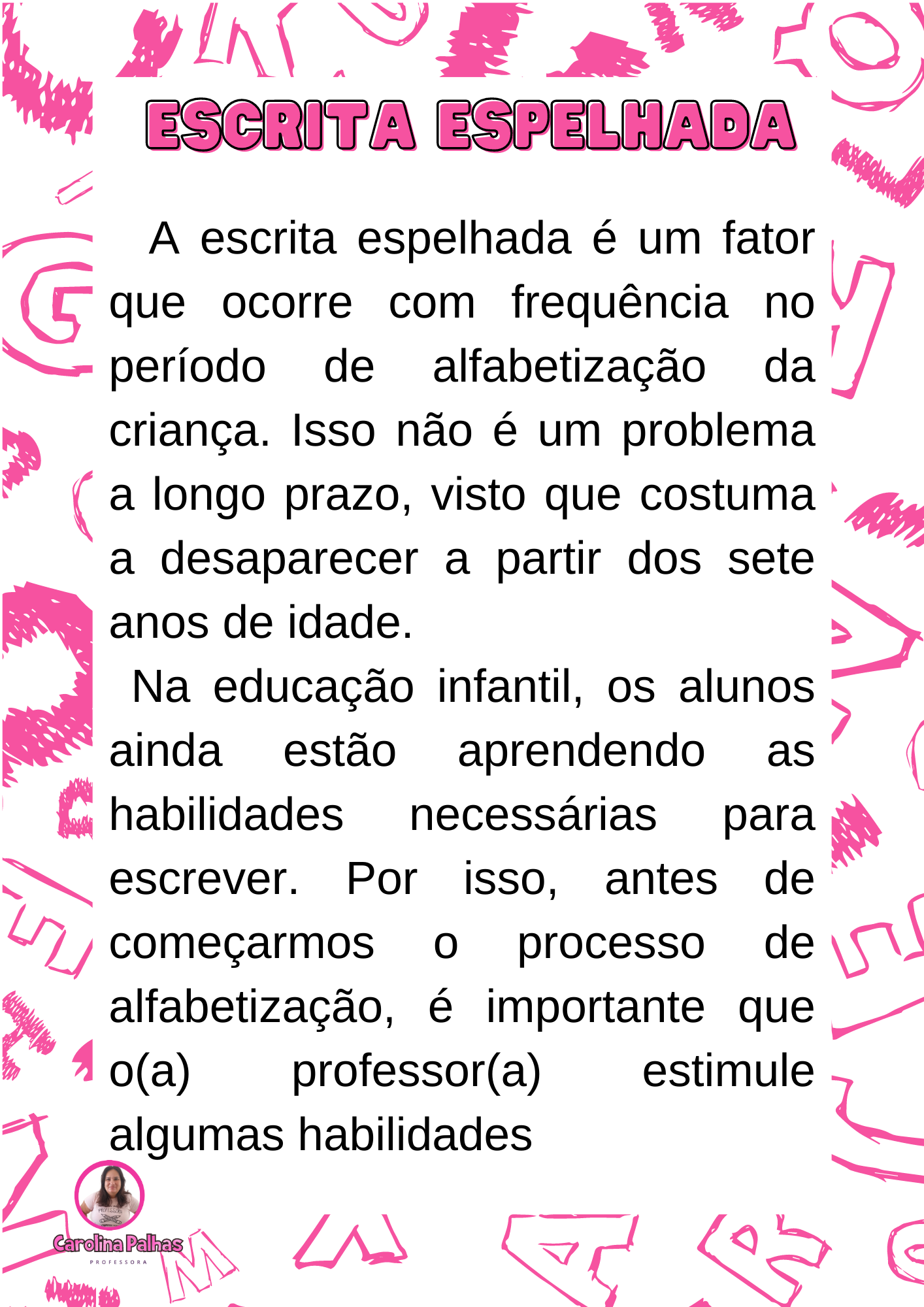 A escrita espelhada é um fator que ocorre com frequência no período de alfabetização da criança. Isso não é um problema a longo prazo, visto que costuma a desaparecer a partir dos sete anos de idade.