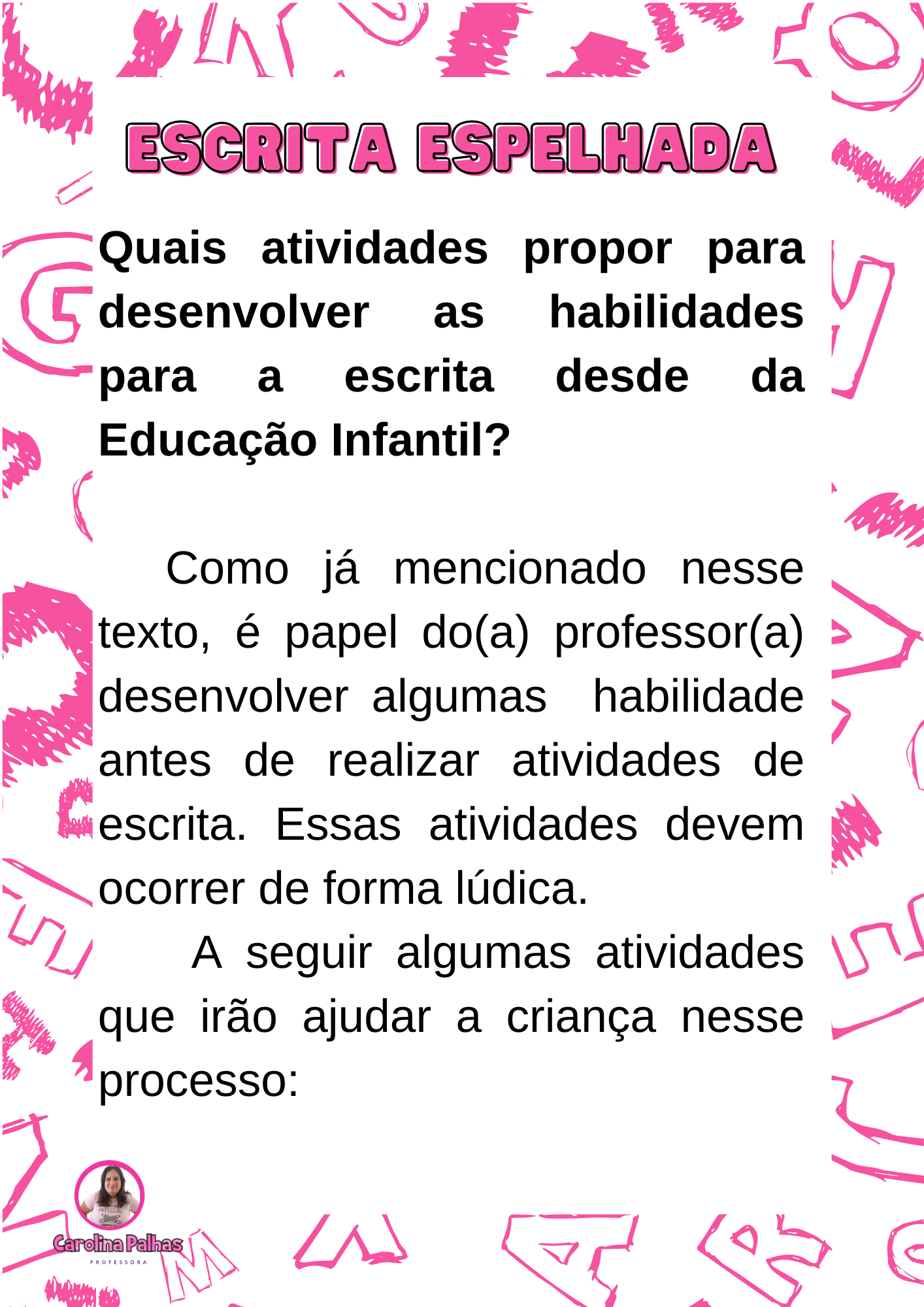 Como já mencionado nesse texto, é papel do(a) professor(a) desenvolver algumas habilidade antes de realizar atividades de escrita. Essas atividades devem ocorrer de forma lúdica.
