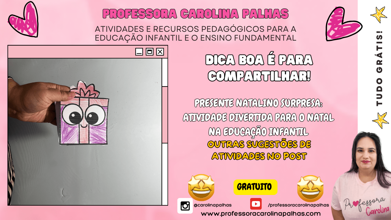 🎁 Palavras-chave: presente de natal, atividade natalina, educação infantil, criatividade, coordenação motora, artesanato infantil, surpresa de natal, papercraft, decoração natalina, atividades manuais, DIY natalino, passo a passo, atividades lúdicas, ideias para o natal