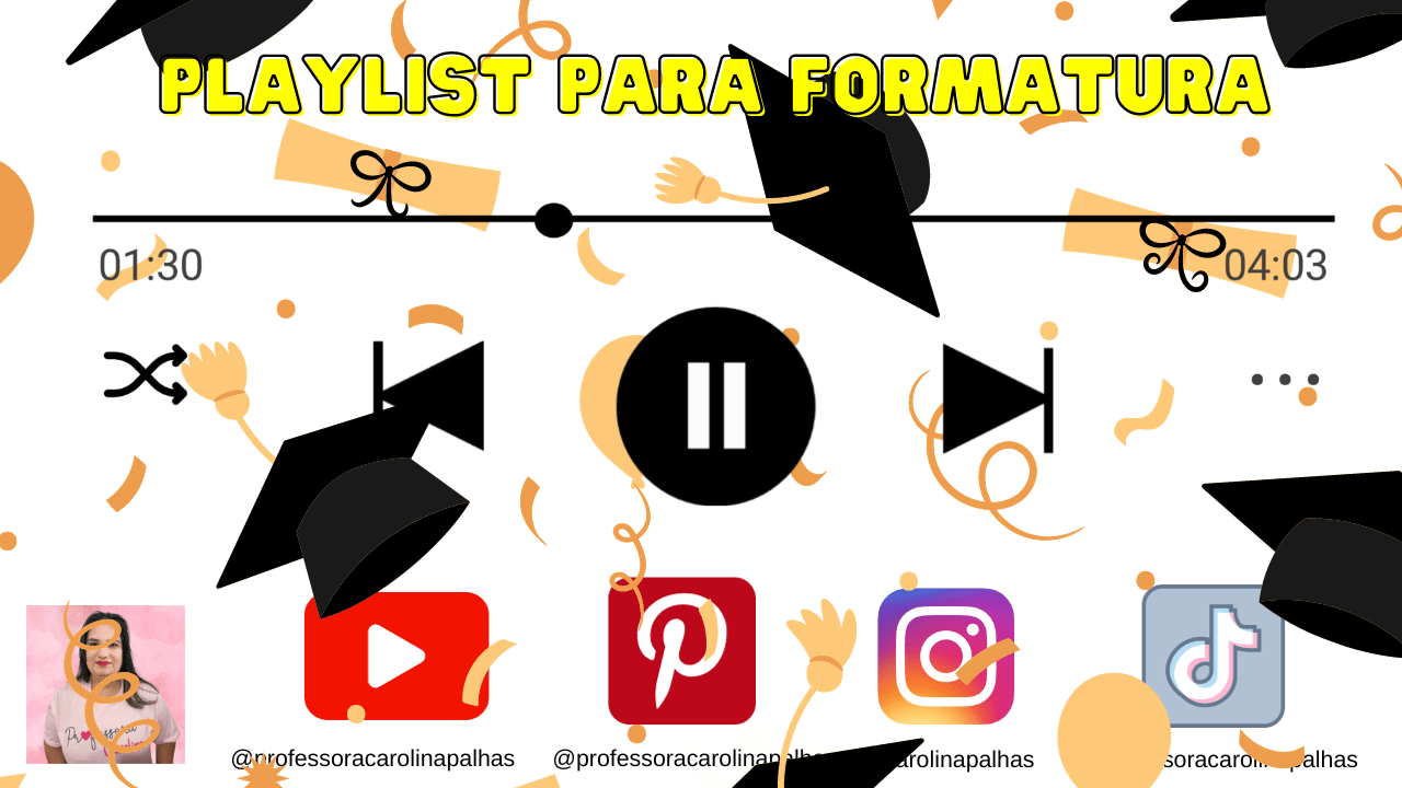 Eu, Carolina Palhas preparei uma playlist especial na Deezer, repleta de músicas que certamente vão animar e emocionar todos durante a formatura. Para ouvir a playlist completa, basta clicar aqui e deixar a magia começar!