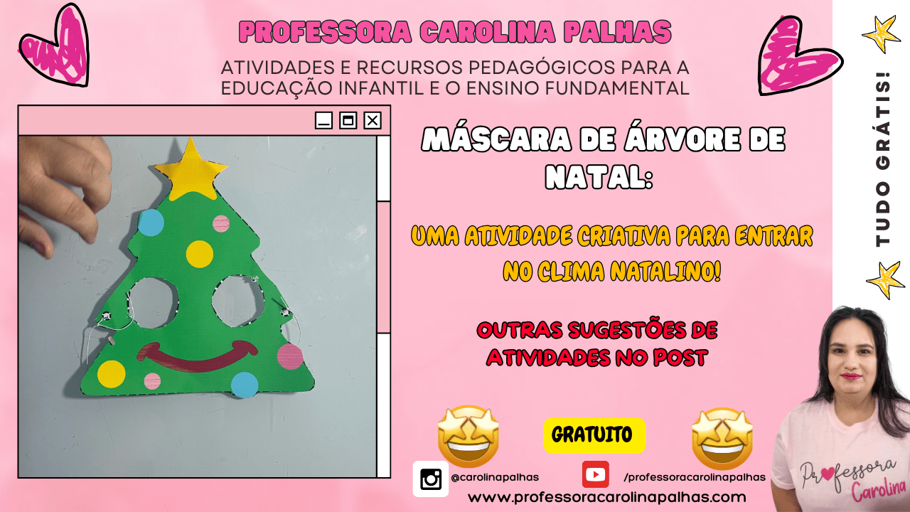 Que tal trazer ainda mais diversão e aprendizado para o Natal? A Máscara de Árvore de Natal é perfeita para trabalhar a criatividade e coordenação motora das crianças, além de proporcionar momentos inesquecíveis de brincadeiras temáticas.