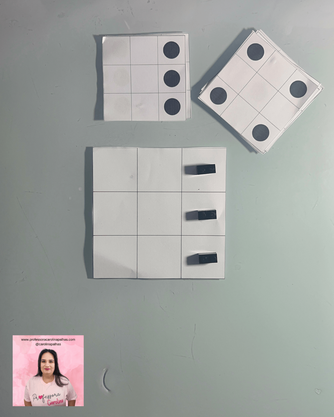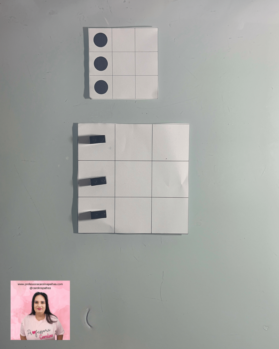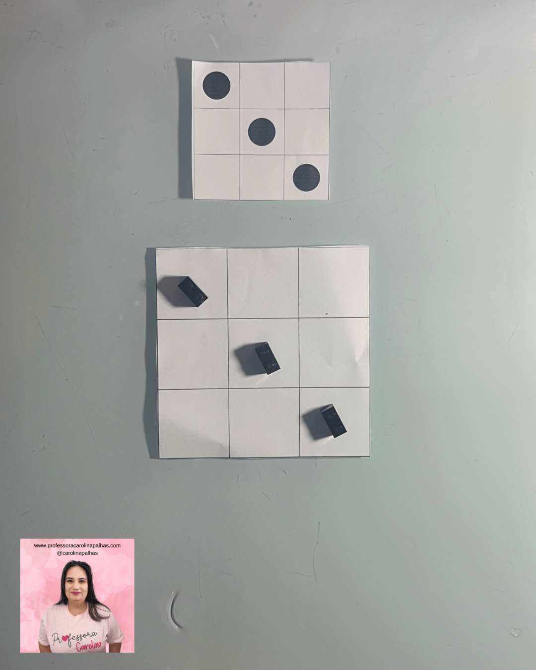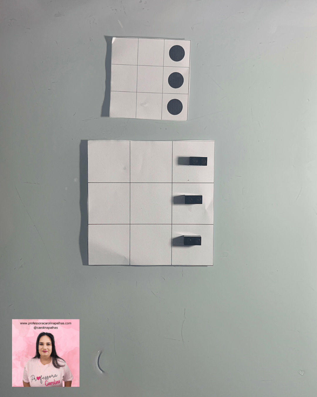 - Peça às crianças que escolham um cartão e coloquem a quantidade correspondente de bloquinhos no espaço indicado.