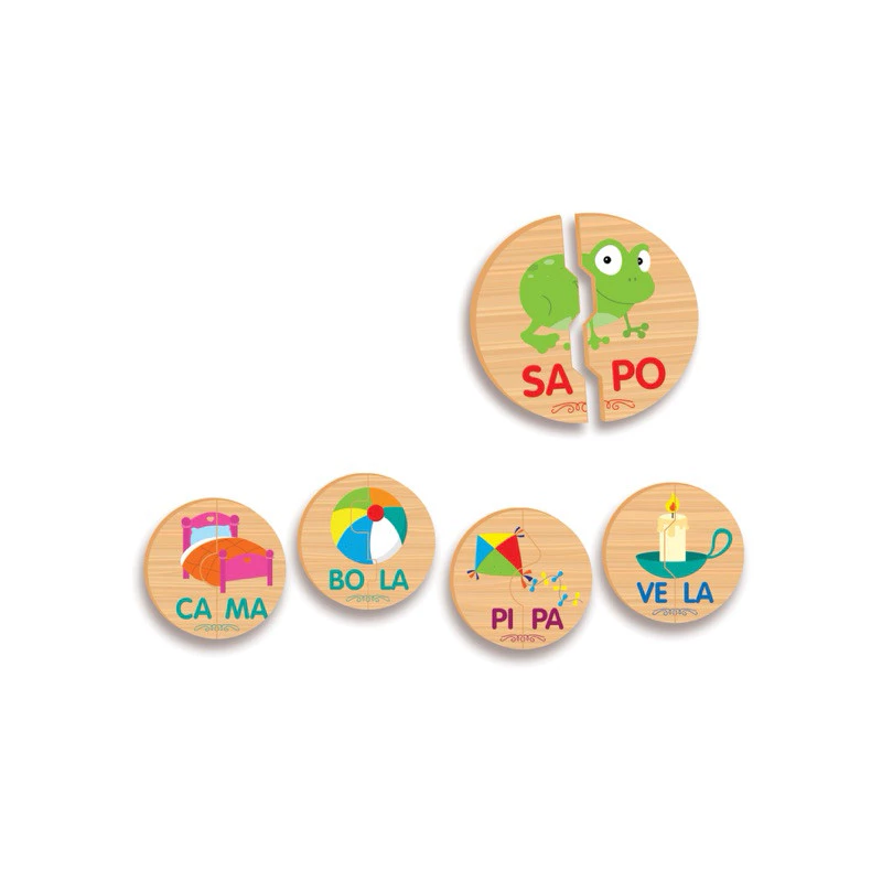 - Sílabas Surpresas: Escolha uma peça e peça que a criança adivinhe a sílaba que a completa.