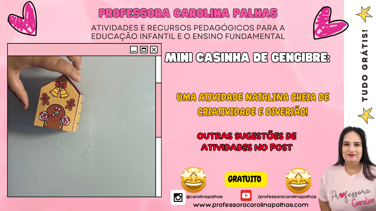 Palavras-chave: Natal, mini casinha de gengibre, atividades natalinas, decoração de Natal, DIY infantil, coordenação motora, criatividade, educação infantil, manualidades, diversão.