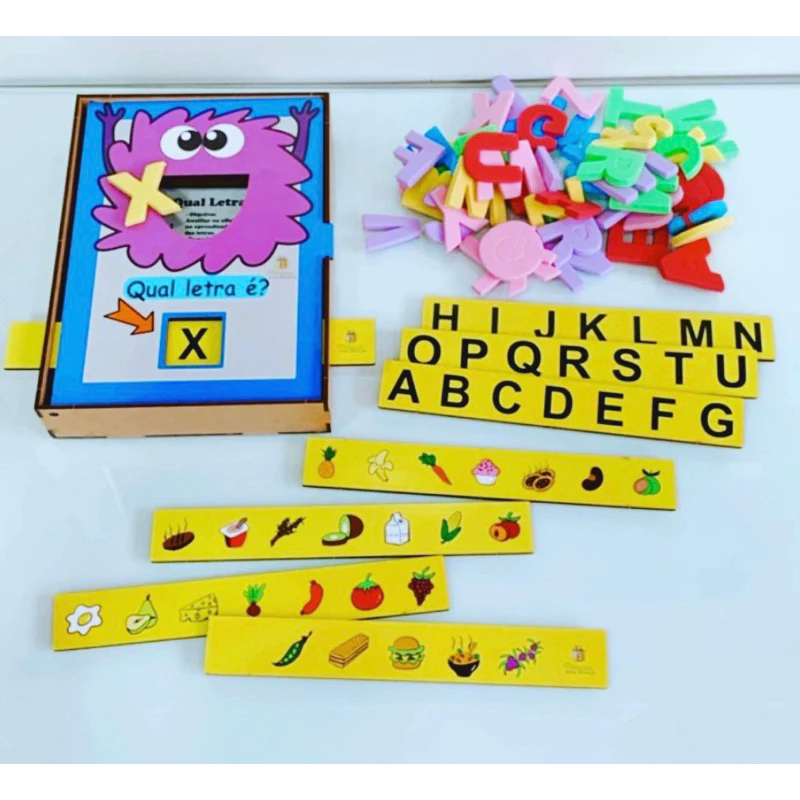 Está em busca de uma ferramenta educativa que une aprendizado e diversão? Apresento a caixinha pedagógica “Qual Letra É?” disponível na Shopee. Com estrutura de madeira resistente, ela é perfeita para trabalhar a identificação de letras e alimentos com as crianças, a partir de 2 anos.