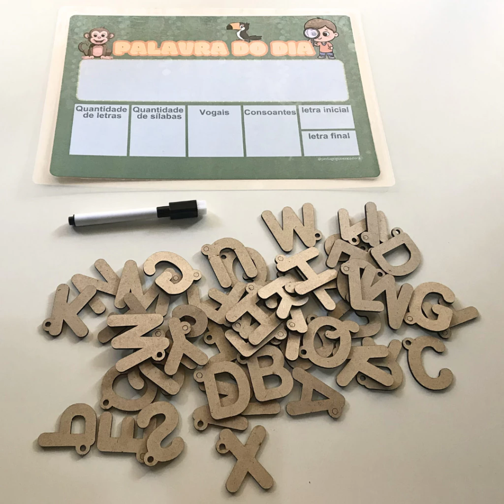 Se você é professor ou ama ensinar de forma criativa, olha só esse recurso didático incrível que eu achei na Shopee: o ‘Palavra do Dia’! Ele é perfeito pra trabalhar letras, vogais, consoantes, sílabas e muito mais. Composto por letras de MDF e uma plaquinha laminada que permite escrever e apagar várias vezes, esse material é uma mão na roda para estimular o aprendizado de maneira lúdica.