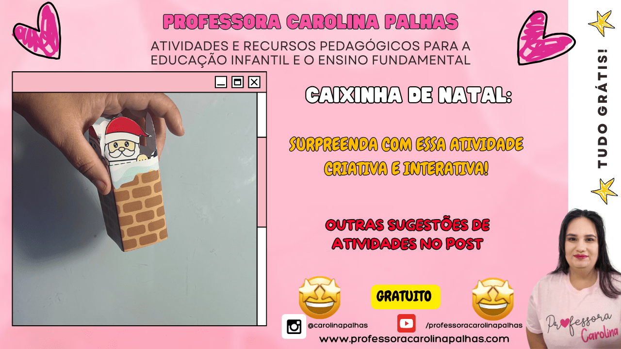 Palavras-chave: Natal, atividade criativa, caixinha de Natal, decoração natalina, DIY infantil, artesanato, coordenação motora, atividades lúdicas, educação infantil, brincadeiras de Natal.