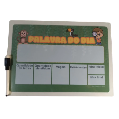 • Atividade: Use as letras da “Palavra do Dia” para formar novas palavras. As crianças podem usar letras móveis ou escrever no caderno.